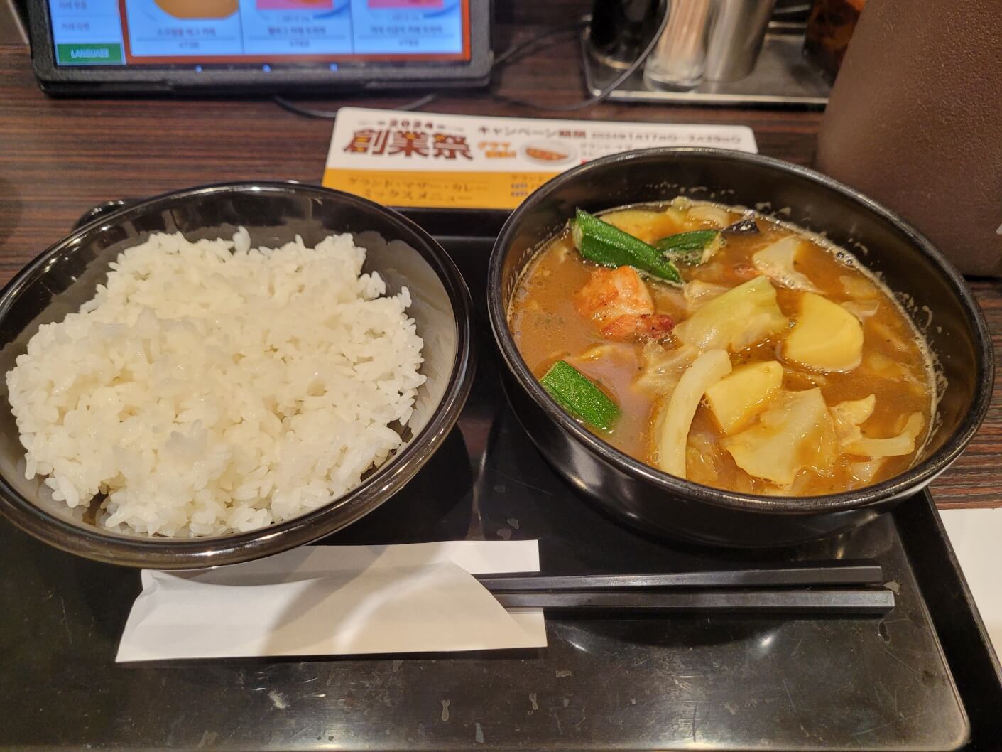 - 저희는 '로스트 치킨 스프카레' 와 '민스 커틀렛 카레' 그리고 음료로 라씨 1잔을 주문했어요.