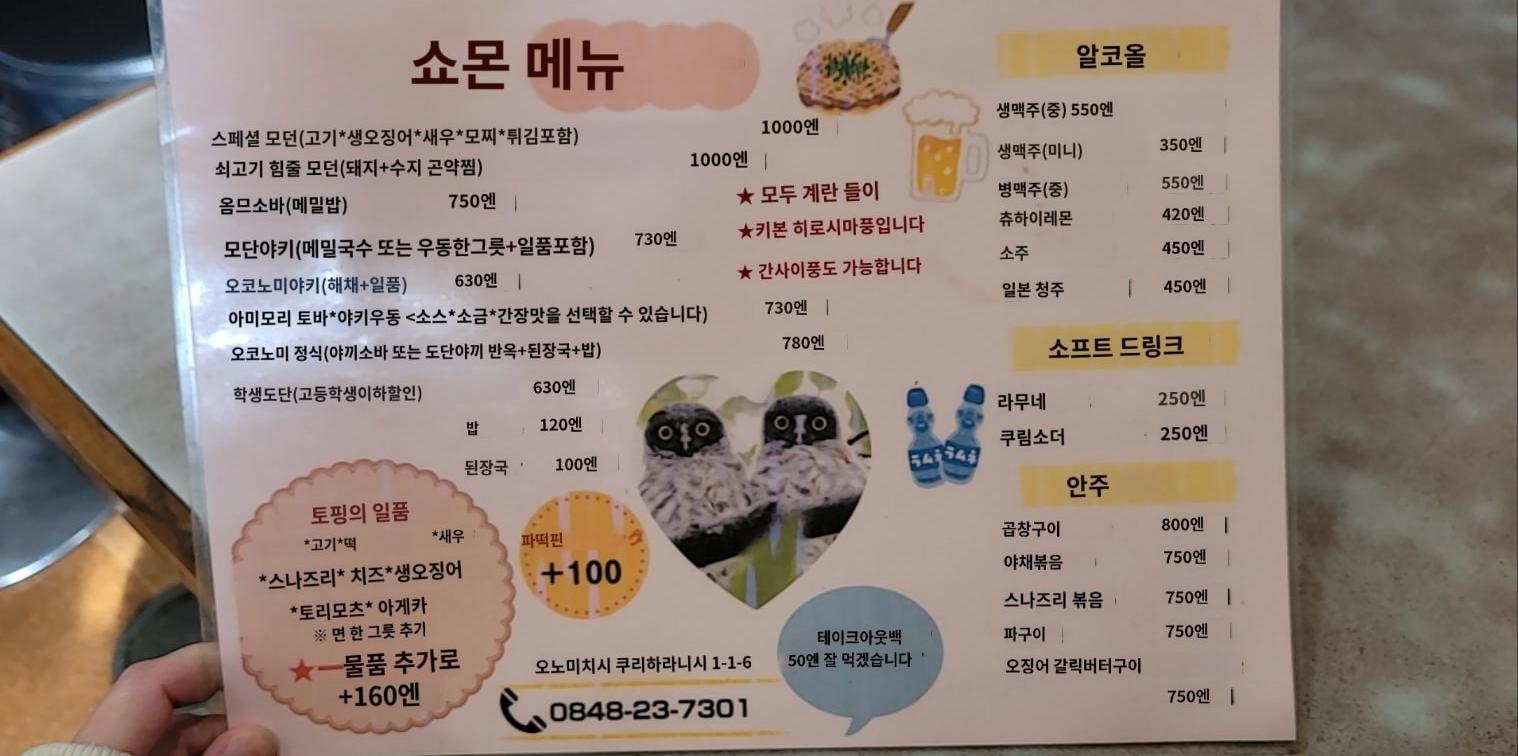 이번 포스팅은 오노미치에서 20년간 가까이 산 현지인 추천맛집으로 알려진 '오꼬노키야끼 쇼몬, お好み焼き 笑門' 입니다.