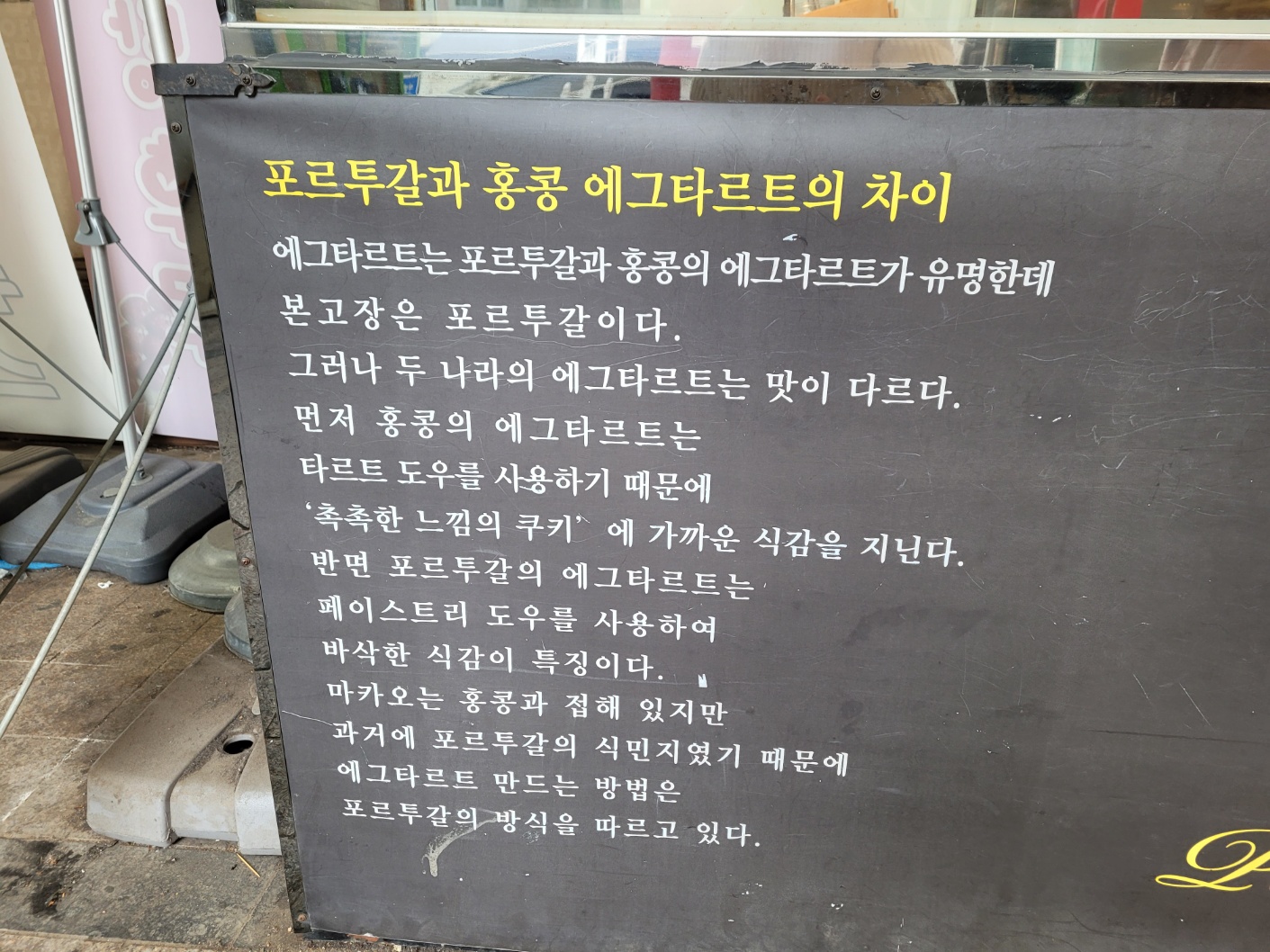 - 에그타르트의 종류가 포르투갈식, 홍콩식이 조금 다른데 저는 포르투칼, 홍콩 모두 가서 에그타르트를 먹어봤을 때 포르투갈식 에그타르타가 더 입맛에 맞더라구요. 그래서인지 타르티야 에그타르트를 맛있게 먹었어요.