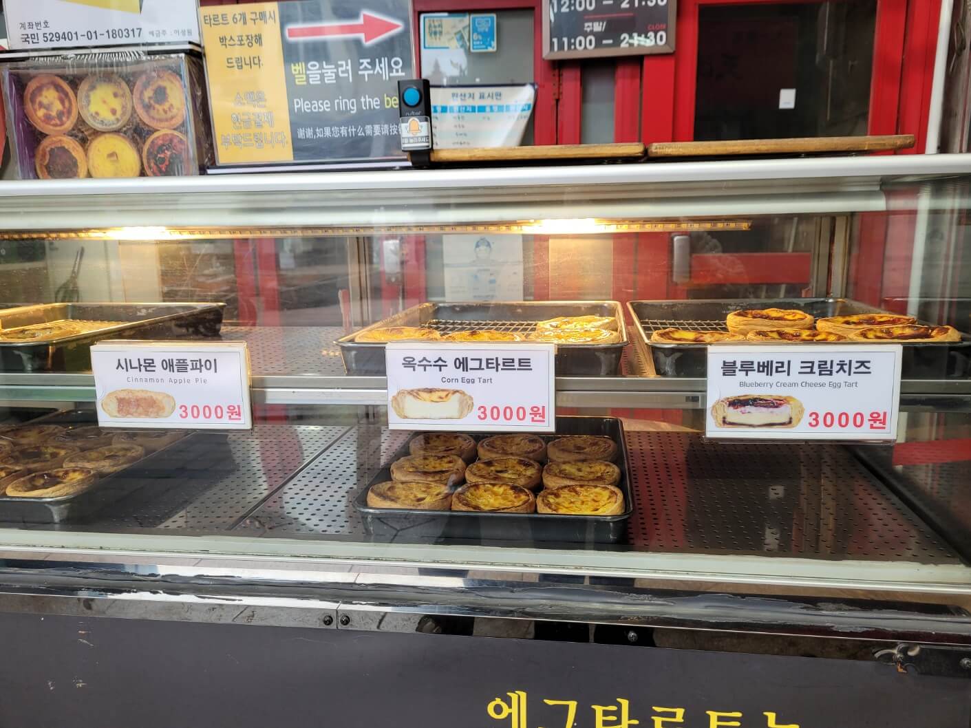 - 저희가 갔을 때는 기본 에그타르트가 20분 정도 후에 나온다고 해서 크림치즈와 블루베리를 구입했어요.