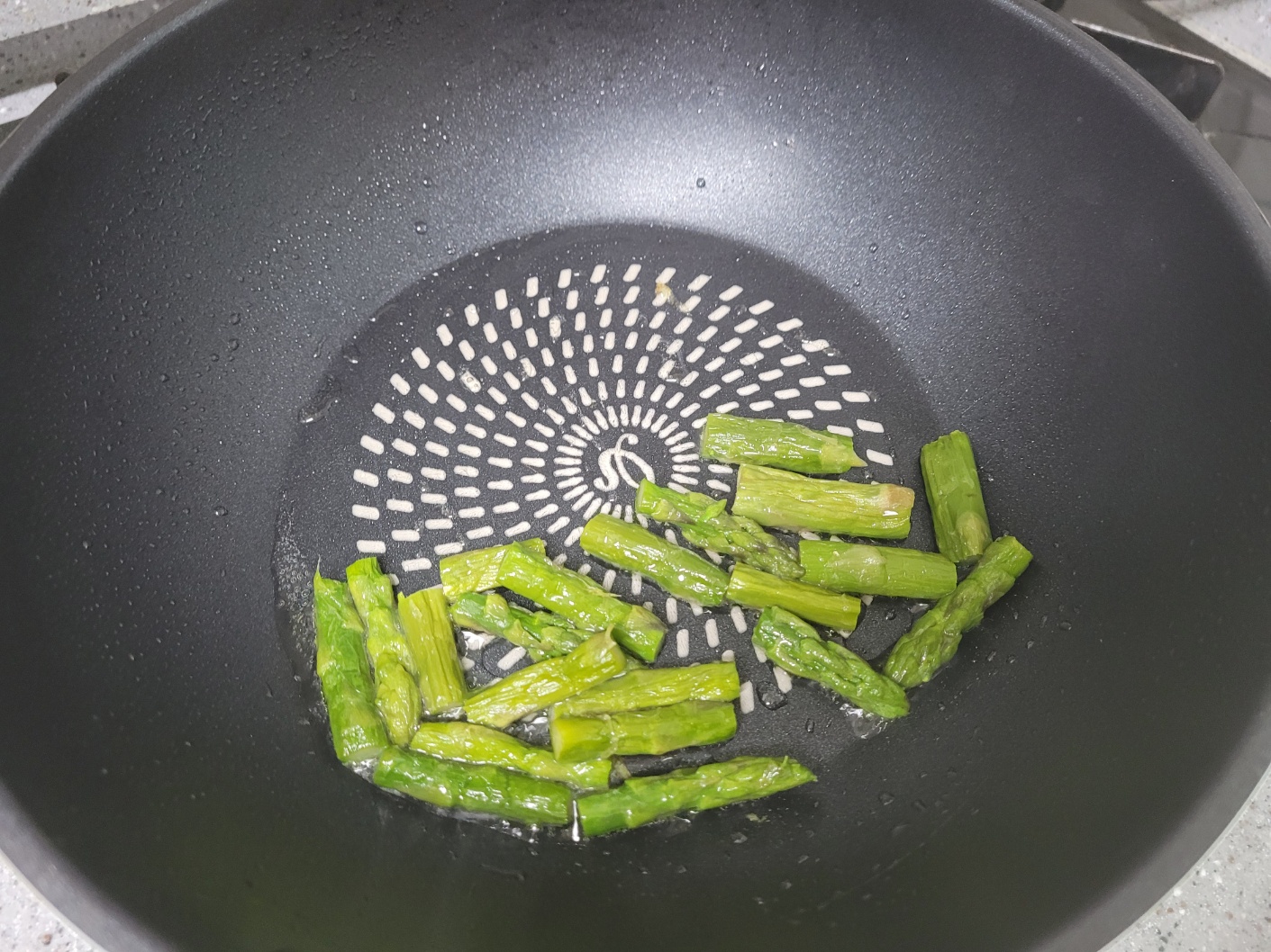 - 프라이팬에 아스파라거스가 잠길 정도로 식용유를 부어주세요.
