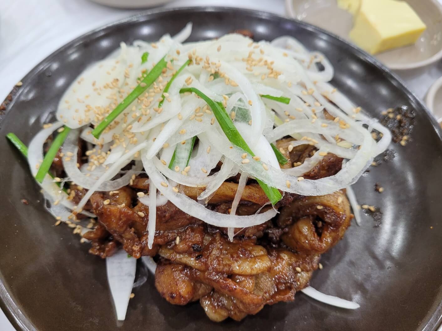 - 돼지불고기는 달달한 양념에 고기가 잘 배여있고 고기가 적당한 두께에 함께 곁들여 먹는 양파와의 조합이 너무 좋았어요.