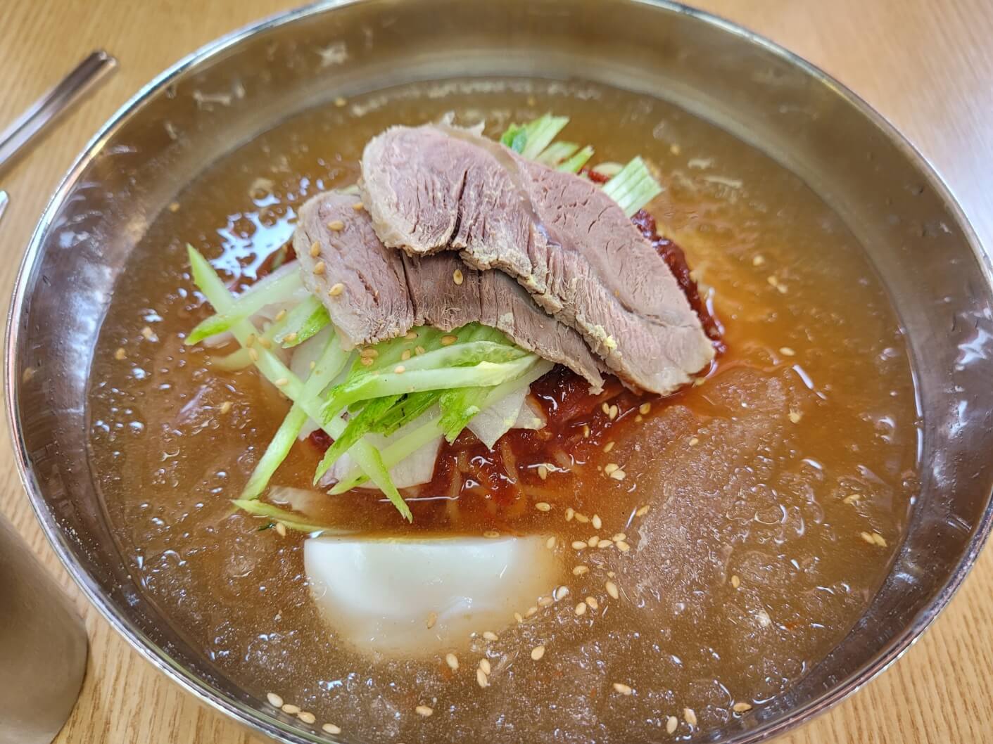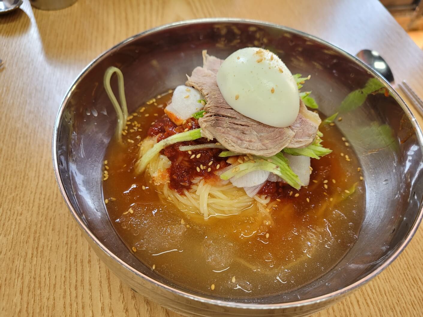 물밀면은 면은 괜찮았으나 육수가 너무 슴슴해서 겨자와 식초를 넣어도 매우 맛이 약했어요.
