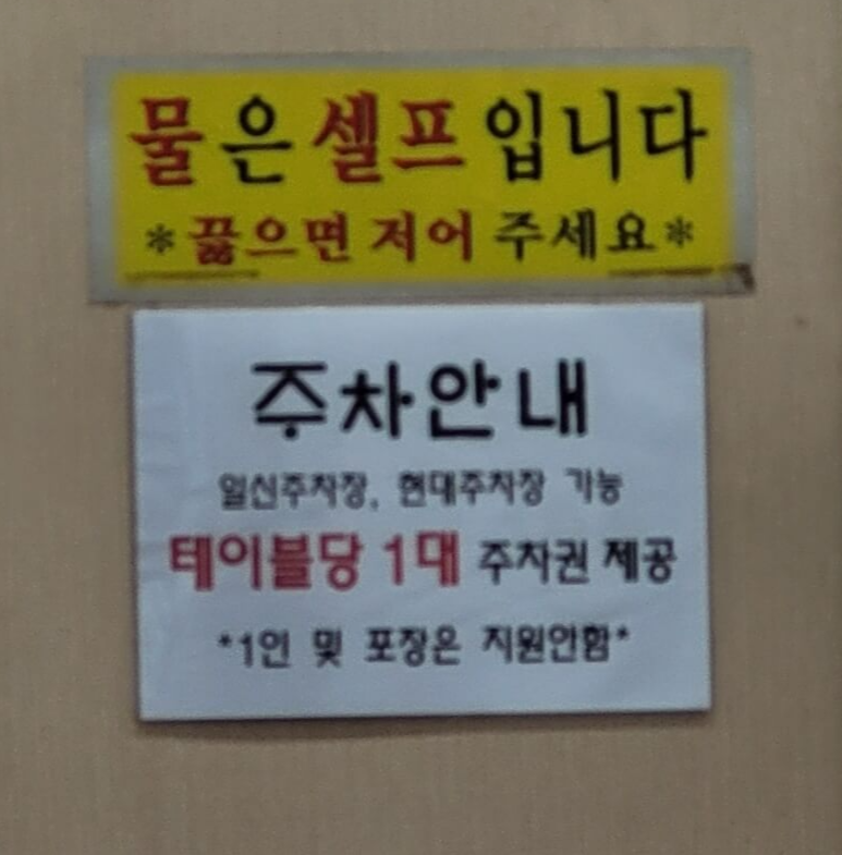 - 가게 바로 맞은 편에 있는 일신주차장과 현대주차장에서 1시간 무료로 주차가능합니다.