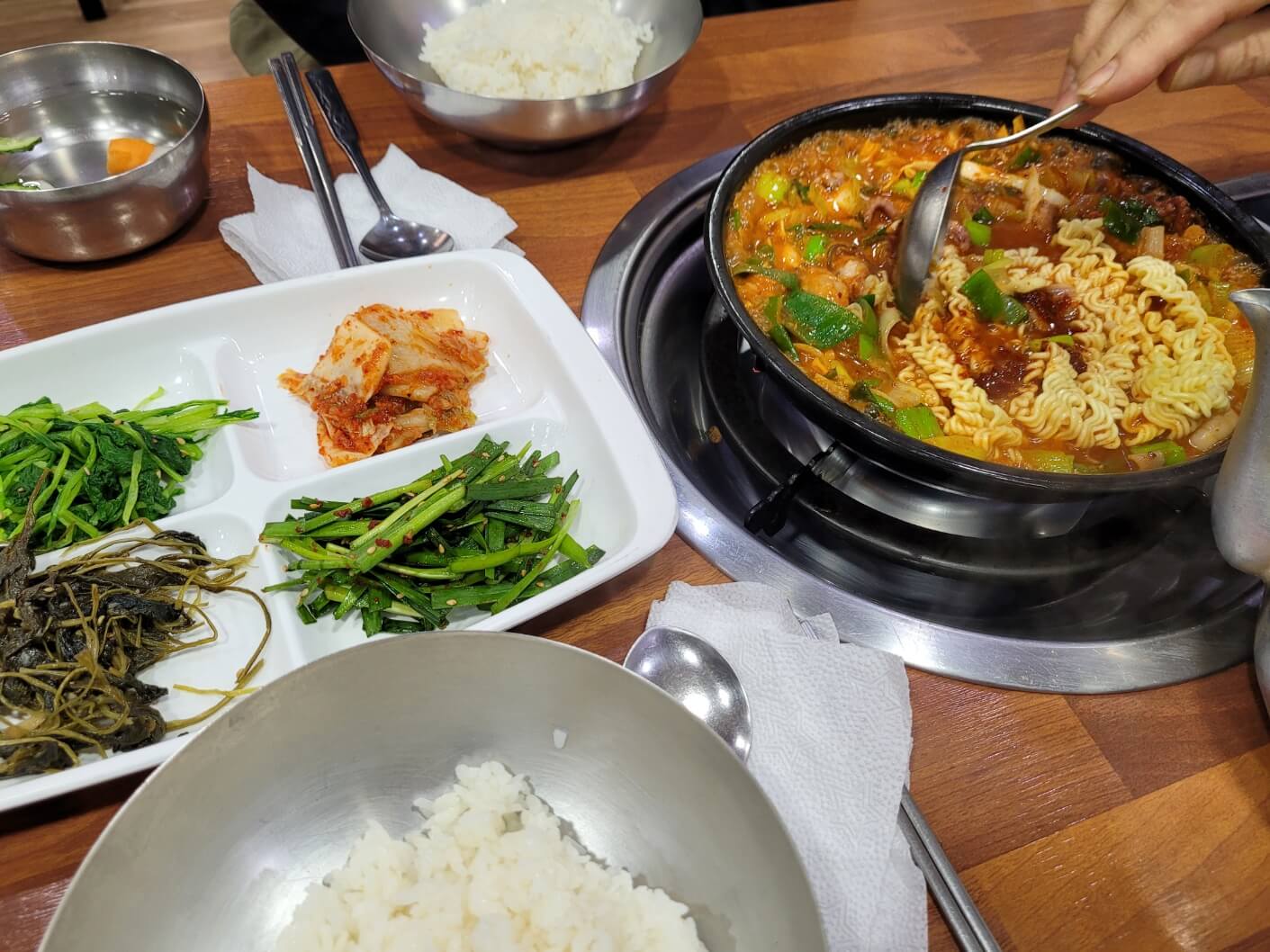 매일 직접 준비한 싱싱한 낙지, 야채, 파, 다진 마늘을 넣고 숙성시킨 양념장을 얹어 육수를 붓고 가스 불에 끓이면서 밥과 먹다가 남은 양념에 사리(우동, 감자, 당면, 라면 등)를 넣어 끓여 먹는 맛은 일품이라고 하니 기대가 무척 되었답니다.