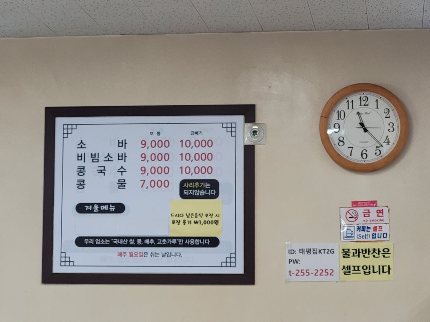 저희는 소바 곱배기 1개와 콩국수 기본 1개 주문했어요.