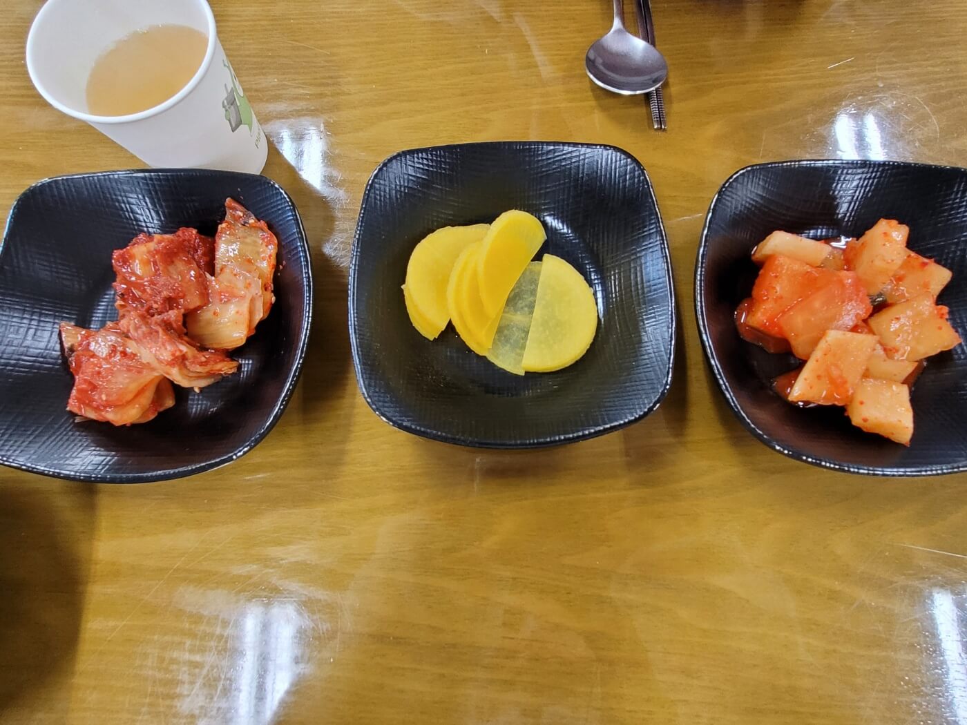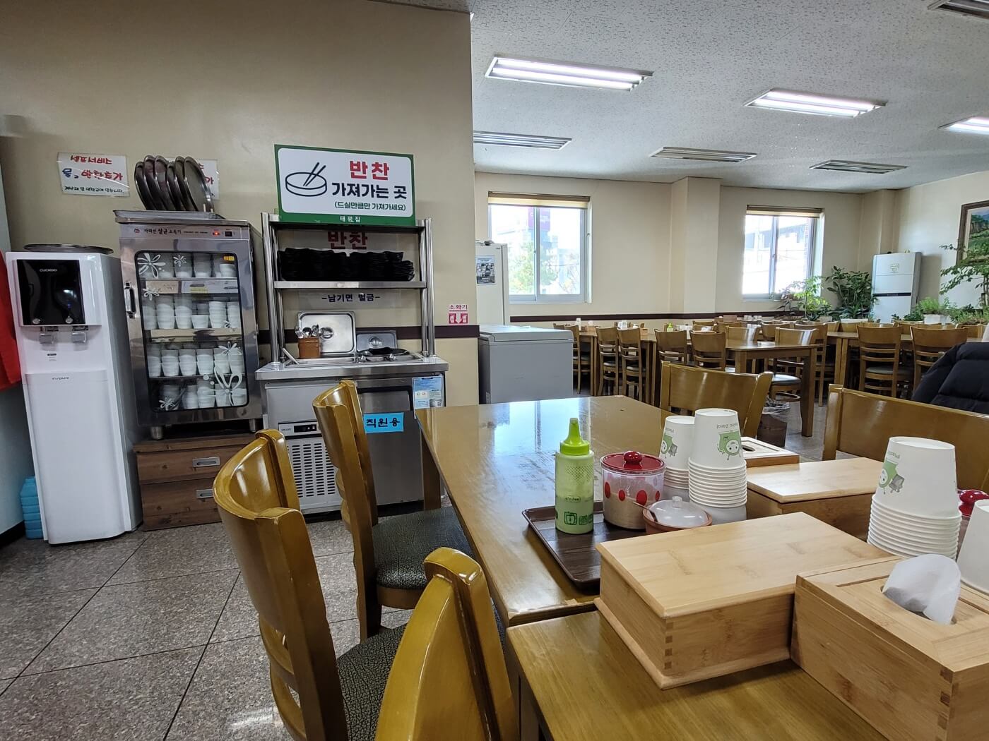 - 깍두기, 단무지, 김치와 같은 밑반찬은 셀프바에서 가져다 드시면 되세요.