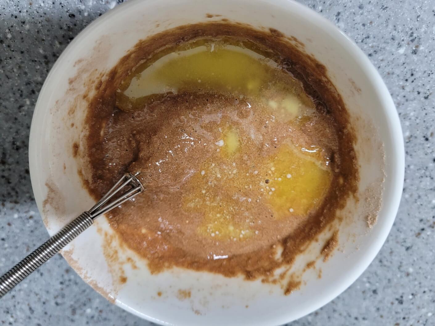 - 여기에 녹인 버터를 넣고 가루 뭉침 없이 섞어줍니다.