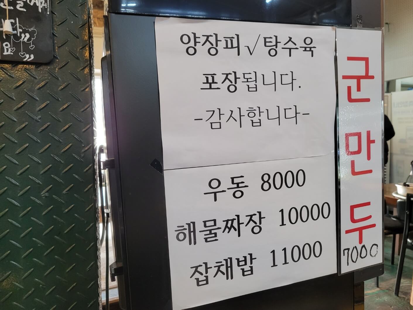 메뉴는 다음과 같아요. 이곳은 양장피와 탕수육이 시그니처 메뉴이어서 그 메뉴들이 주였고 짜장면과 짬뽕도 있답니다.