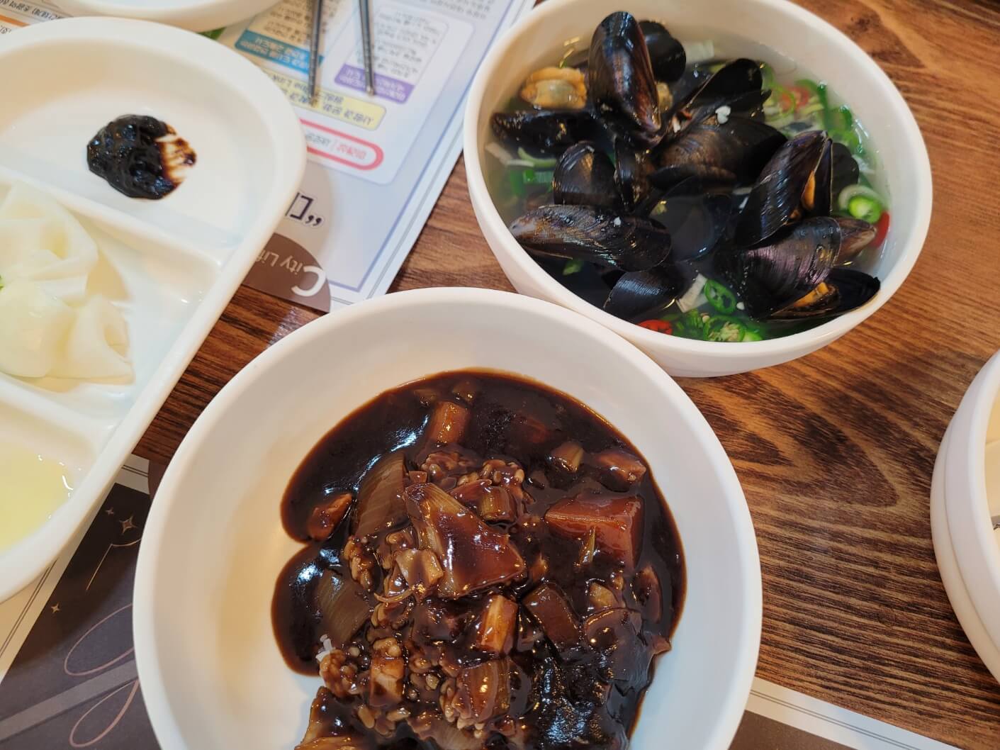 그리고 기본적으로 맛보기 짜장밥과 홍합탕을 주시는데 이게 진짜 일품이에요.