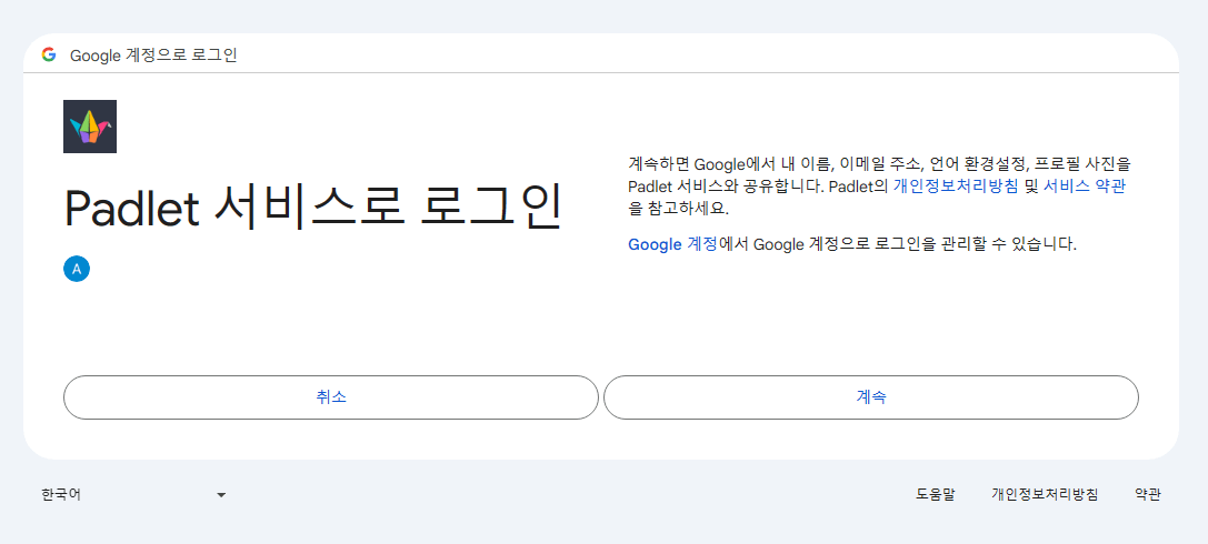 분명 패들렛에서 로그아웃을 했었는데 구글 계정을 누르니 자동으로 로그인이 되더라구요.