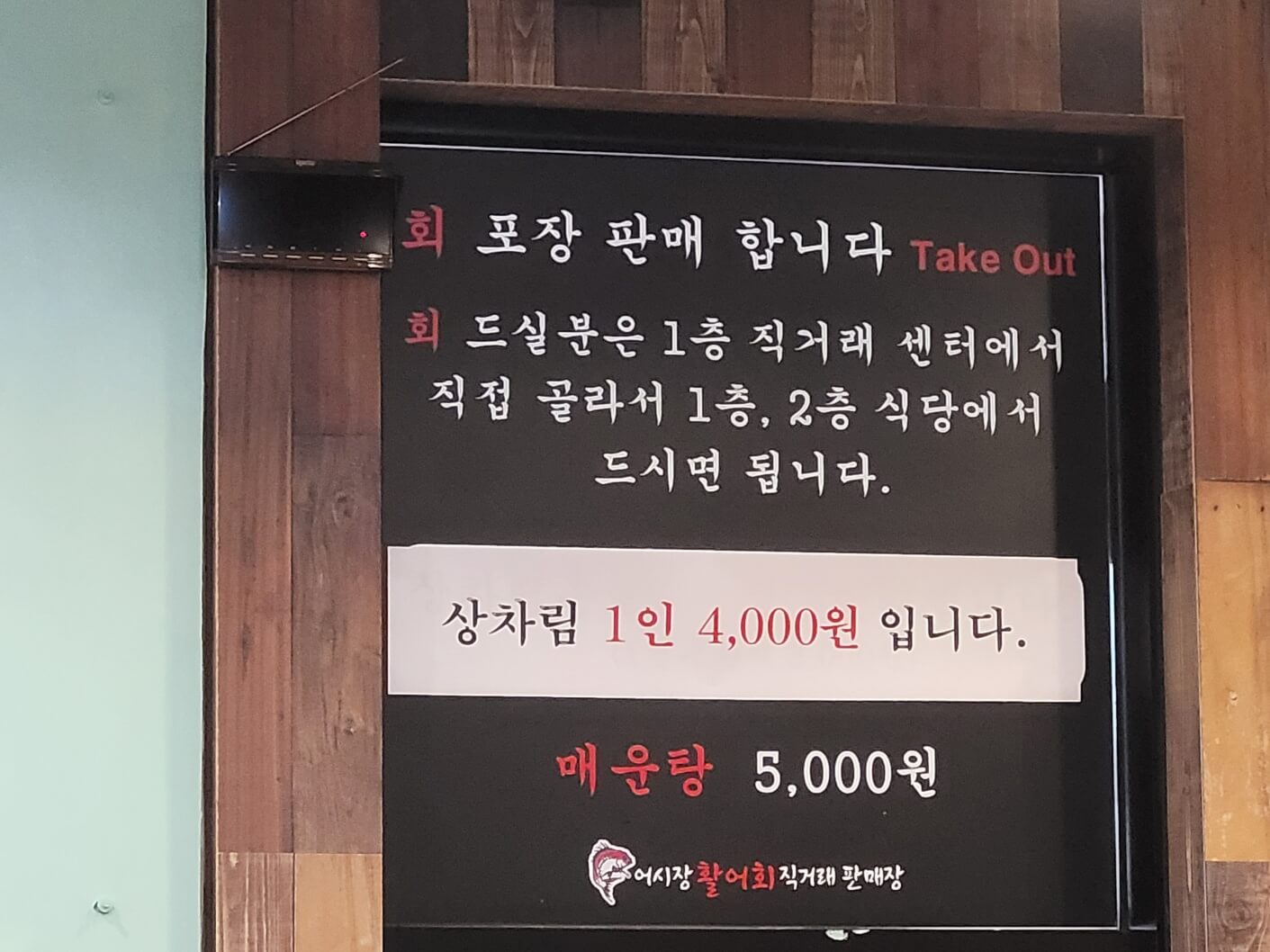 회나 조개류들은 생물로 포장판매하시는 거 같은데, 쭈꾸미와 전복은 조리해서 먹고만 갈 수 있더라구요.