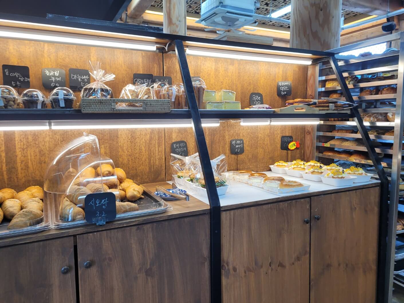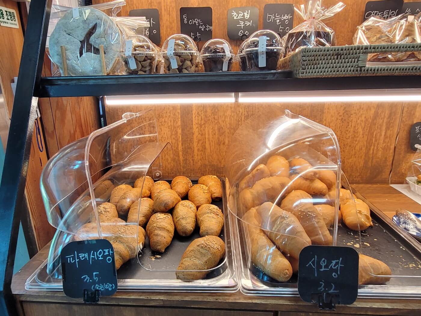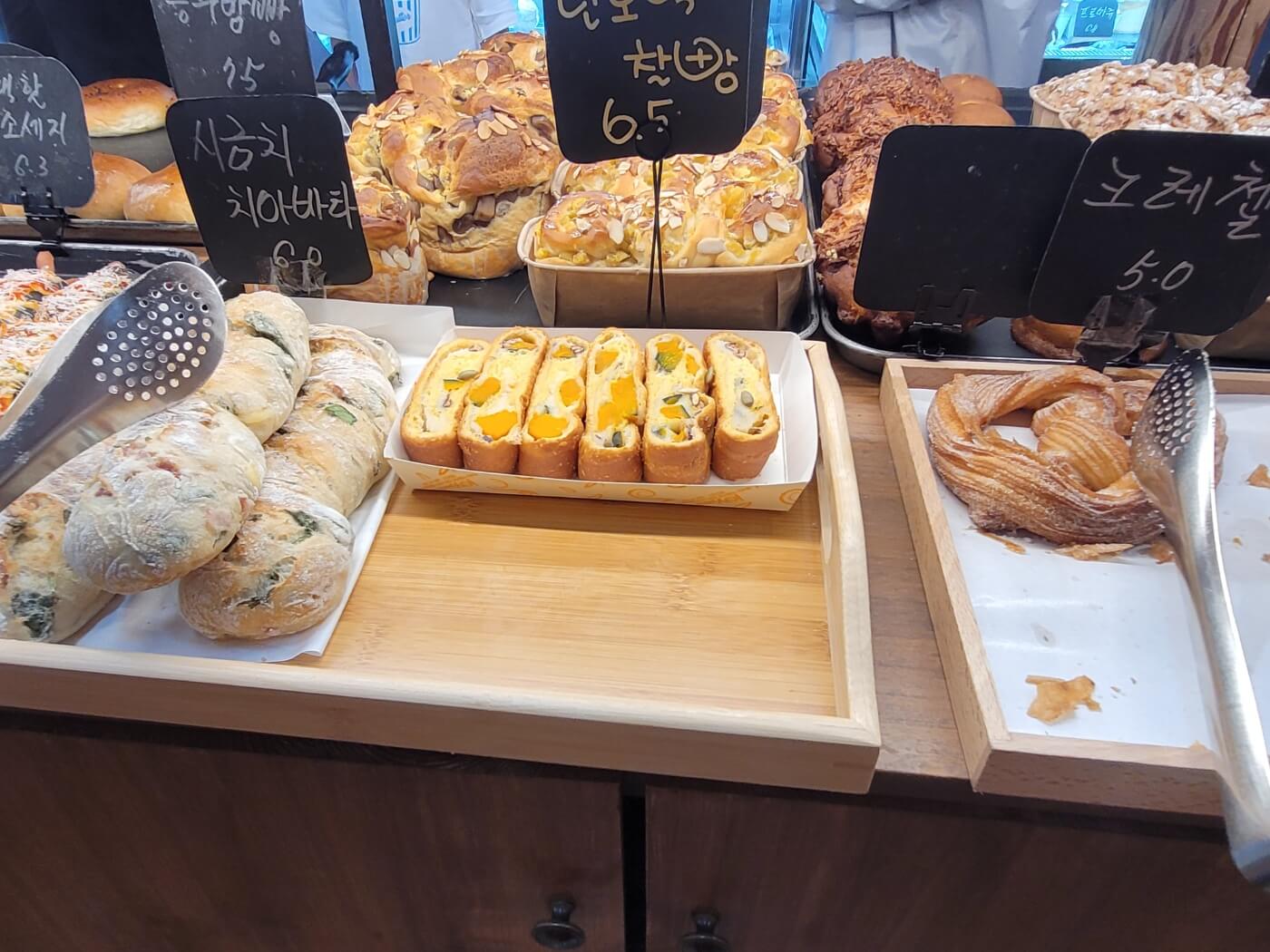 본관에 들어가면 빵 종류가 매우 많아요.