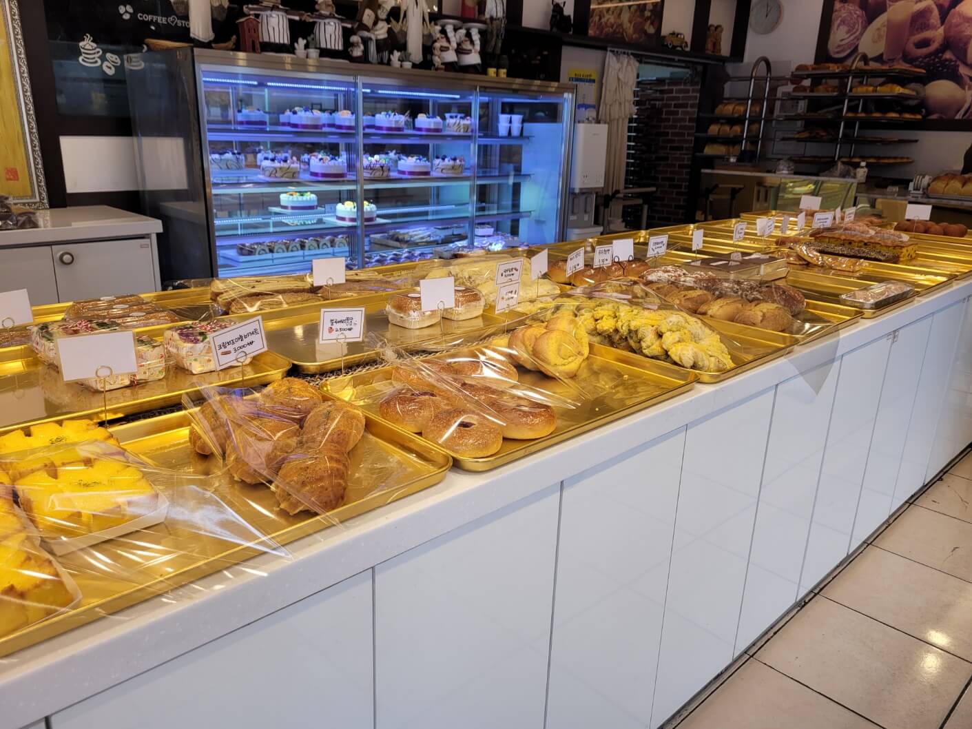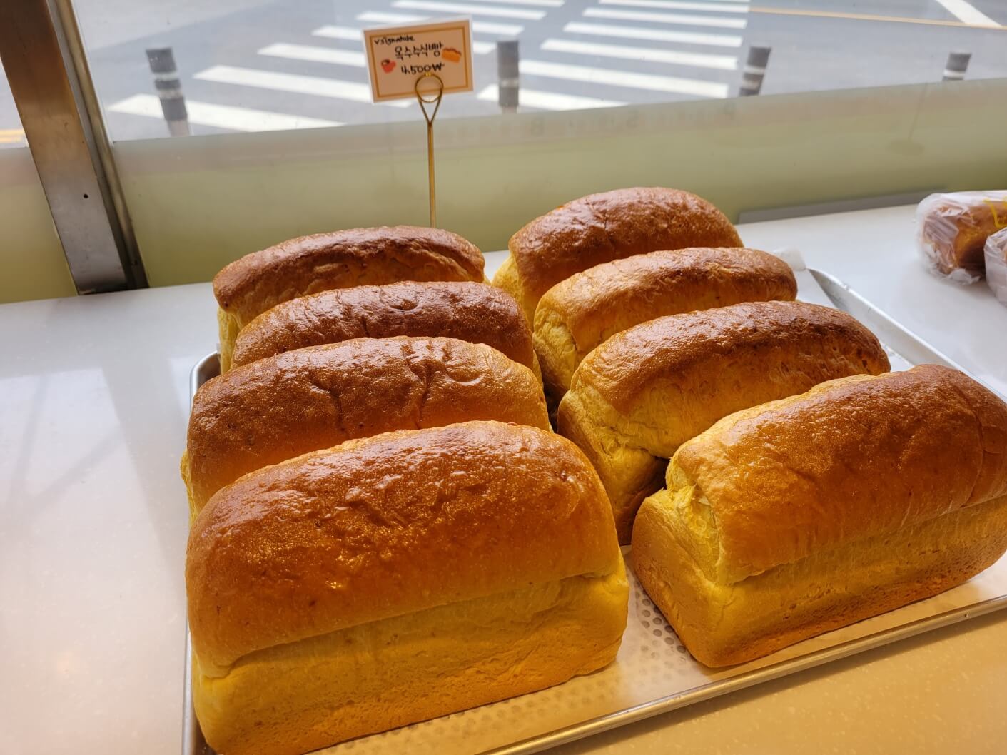 - 옥수수 식빵 외에도 야채빵, 샐러드빵, 상투과자 및 마늘 바게뜨, 소금빵, 케익 등등 종류가 꽤 있었어요.