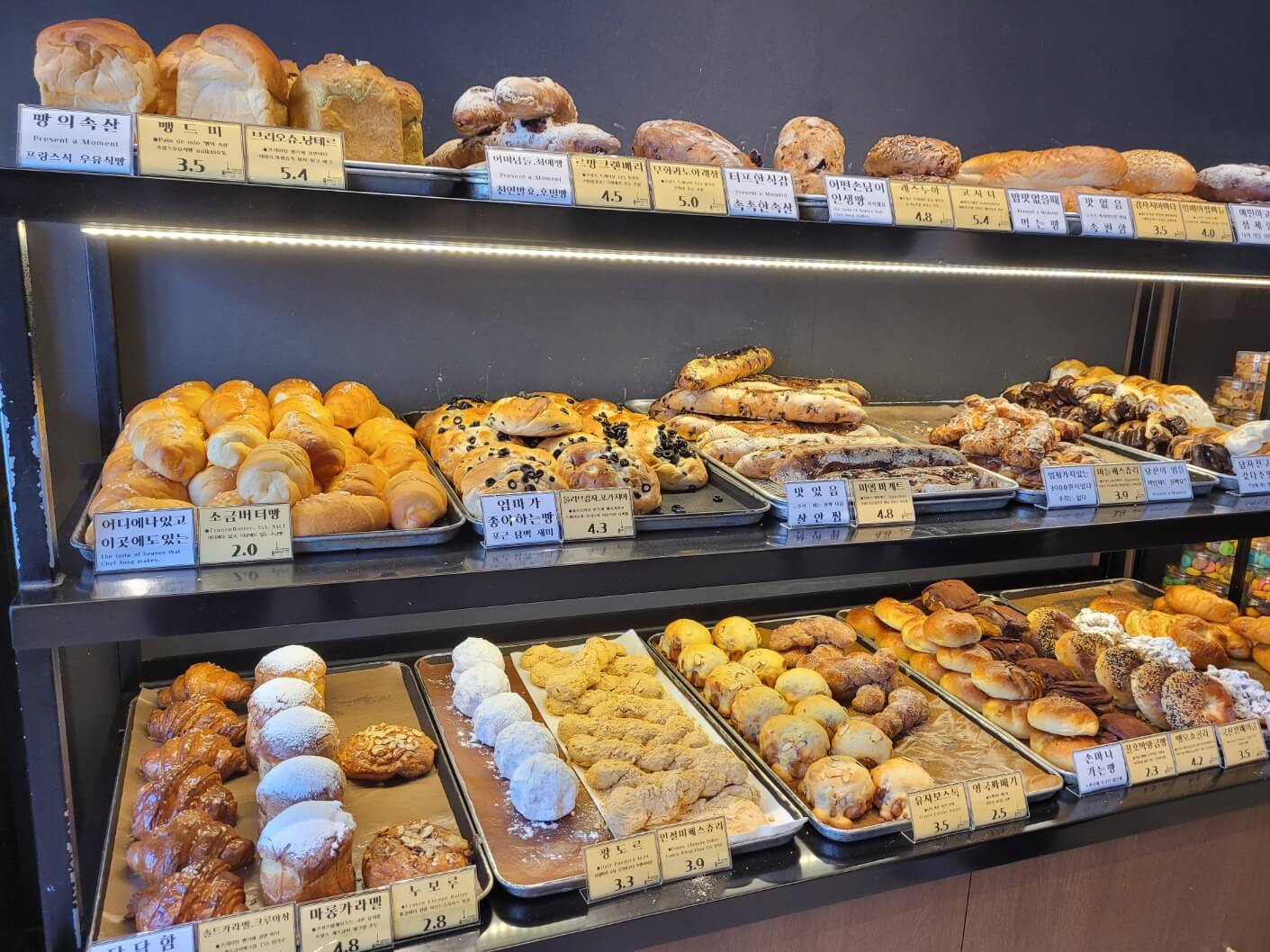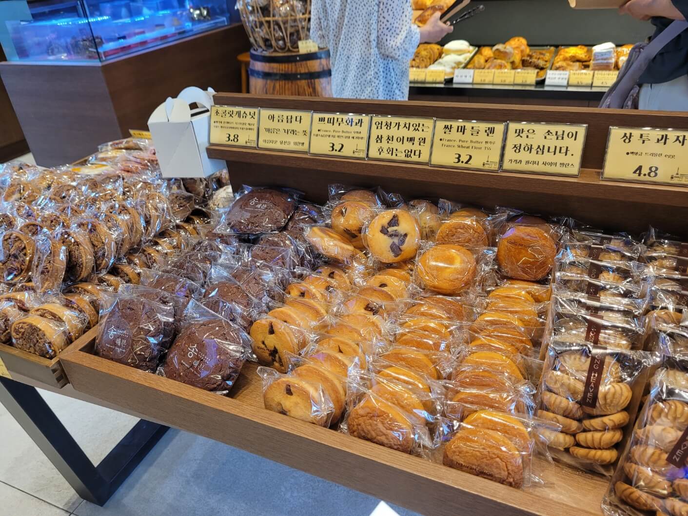 빵 종류는 바게뜨, 깜빠뉴 종류뷰터 페스추리, 소금빵, 빨미까레, 몽블랑 등 그리고 다양한 쿠키 종류들로 매장은 크지 않지만 빵 종류는 정말 다양하답니다.