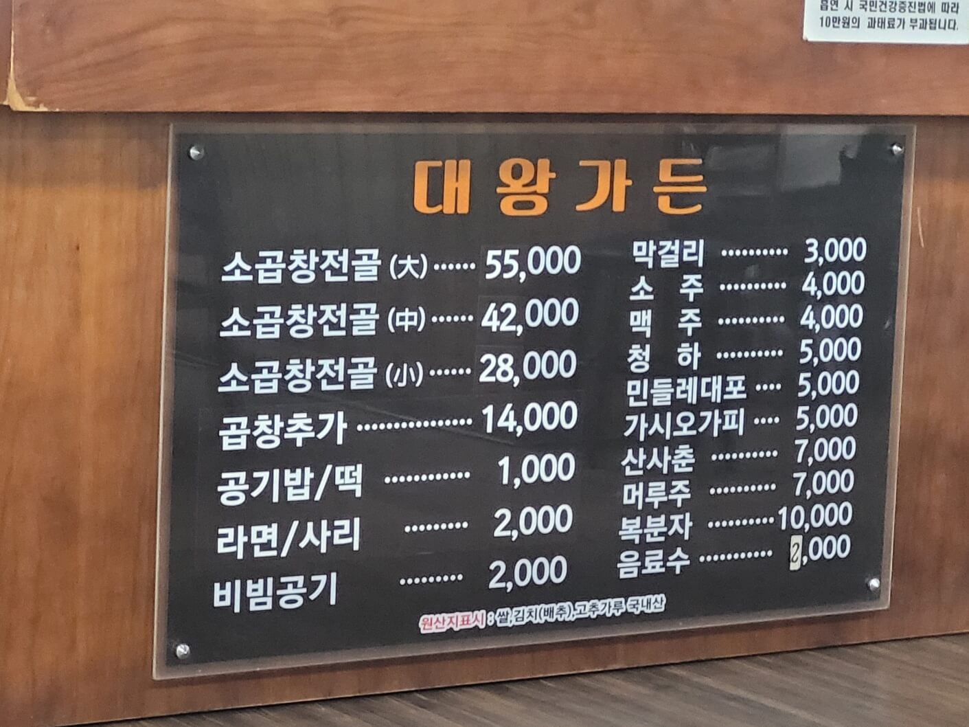 정말 맛있는 식사를 즐길 수 있는 대왕가든의 소곱창전골입니다.
