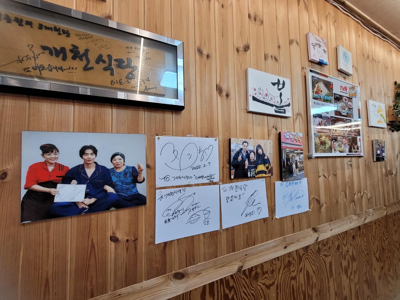 - 백종원의 3대 천왕 및 다수의 매스컴 및 연예인들 방문한 사진들을 매장입구에서 보실 수 있어요.