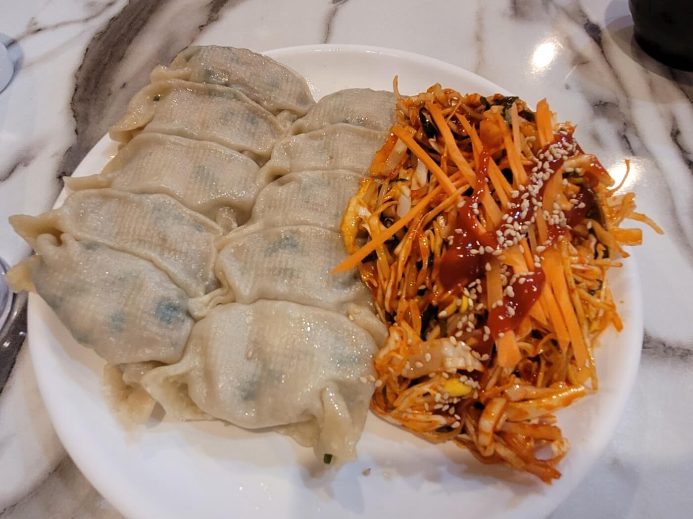 - 저희는 비빔 찐만두 8,000원 와 물만두 7,000원 이렇게 주문했어요.