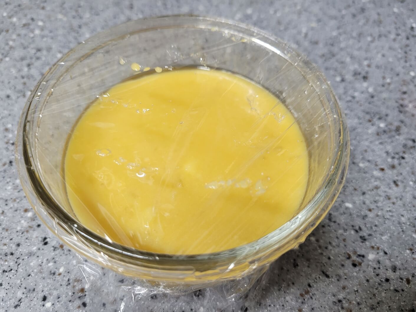 그릇에 랩을 씌운 후, 포크로 구멍을 내준 다음 전자레인지에서 2분 돌려주면 완성입니다.