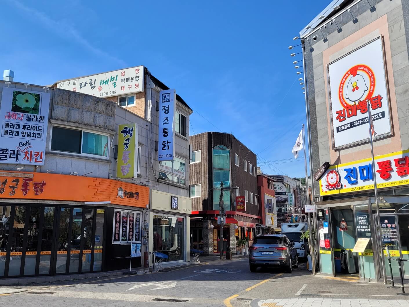- 진미통닭: 통닭거리 초입에 있으며 제일 유명해요. 껍질이 바삭하면서 짭짤한 편이에요