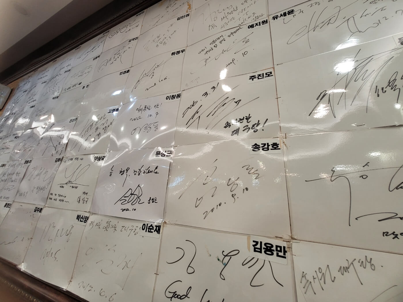 가게 내부는 쾌적하고 넓었으며 한쪽 벽면을 둘러싸고 유명 연예인들 싸인으로 가득했어요.