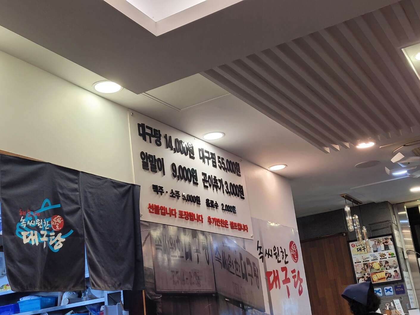 매우 맑은 국물에 시원했으며 대구는 실하고 쫄깃했어요.