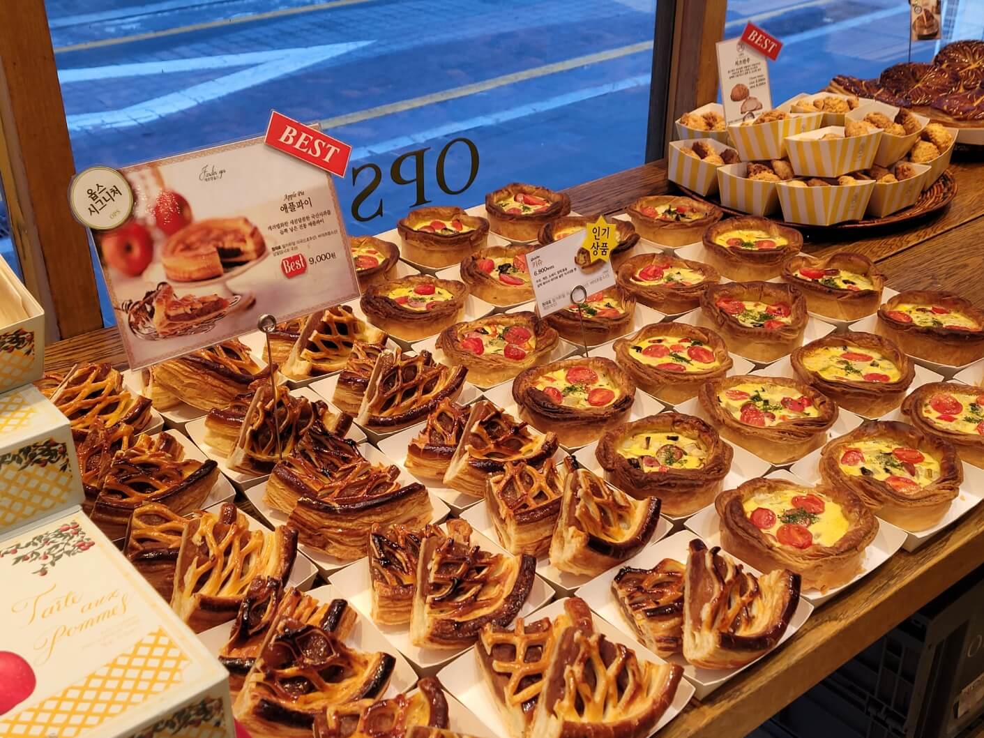 저는 이 날 아침 8시에 방문했는데 빵이 나오는 중이었고, 슈크림은 9시에 나온다해서 크림치즈 데니쉬와 애플파이만 구입해서 먹어보았어요. 아침 일찍 방문해서인지 빵들이 모두 따끈했어요.