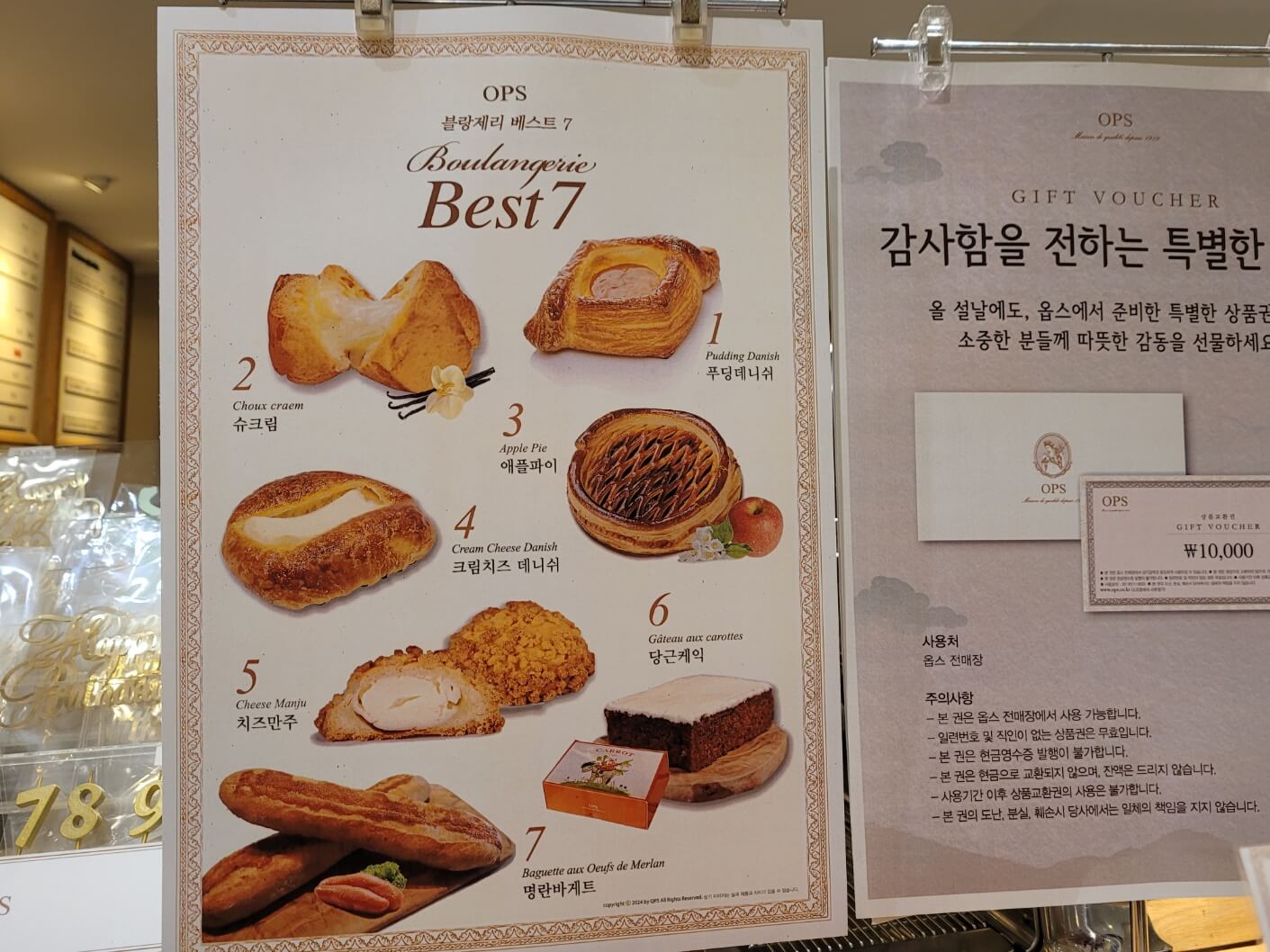 빵, 케익 종류가 다양했으며 best 7 메뉴도 적혀있어서 처음 가시는 분들도 빵을 고르기 쉬우실거에요.