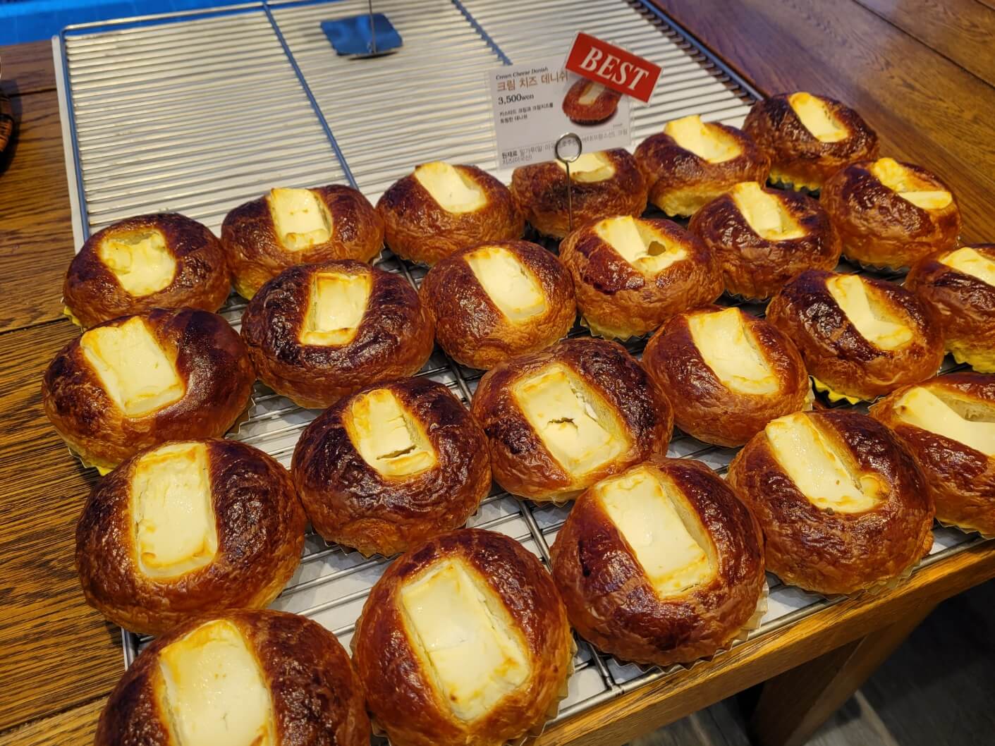 - 크림치즈 데니쉬: 바삭한 페이스트리 속에 부드러운 크림치즈가 가득 들어간 달콤한 빵입니다.