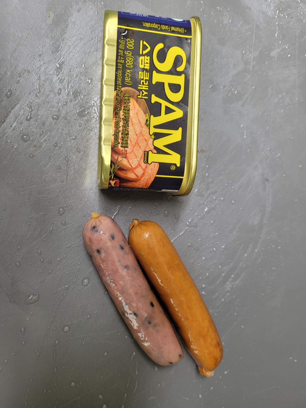 햄은 집에 있는 수제 소세지와 스팸으로 준비했어요.