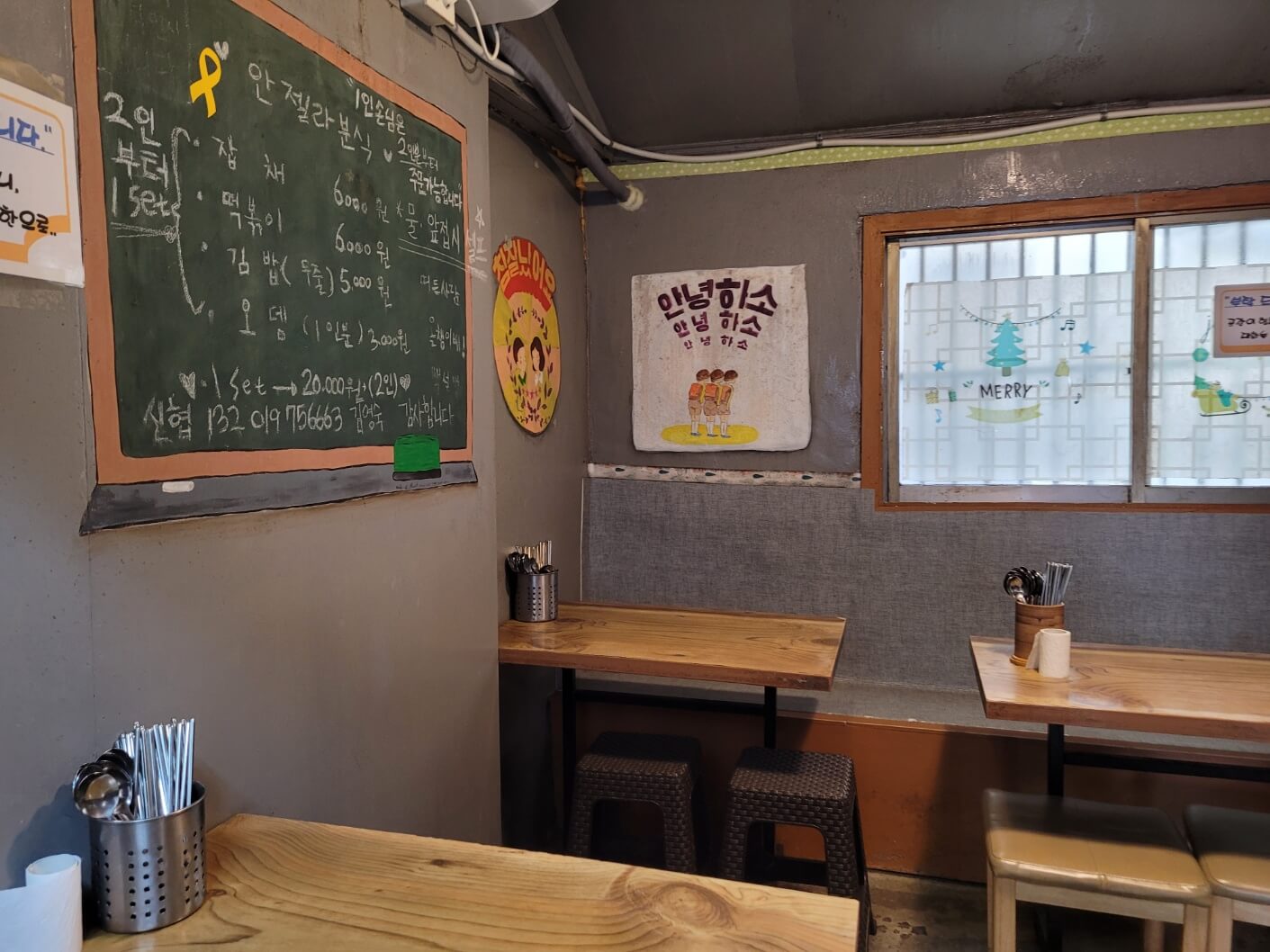 기본적으로 단품주문은 처음에는 안되고, 2인세트(잡채, 떡볶이, 김밥 2줄, 오뎅 이렇게 2만원)를 시켜야된다고 하더라구요.