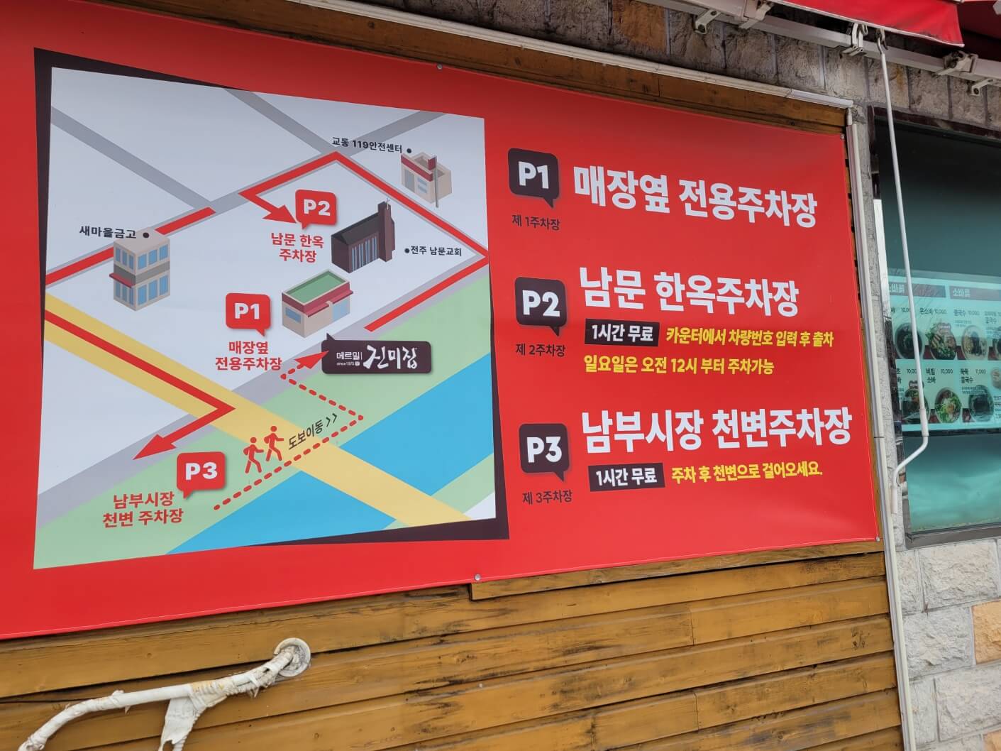 - 가게 옆에도 주차장이 있으며 남문한옥 주차장과 남부시장 천변 주차장도 1시간 지원돼요.
