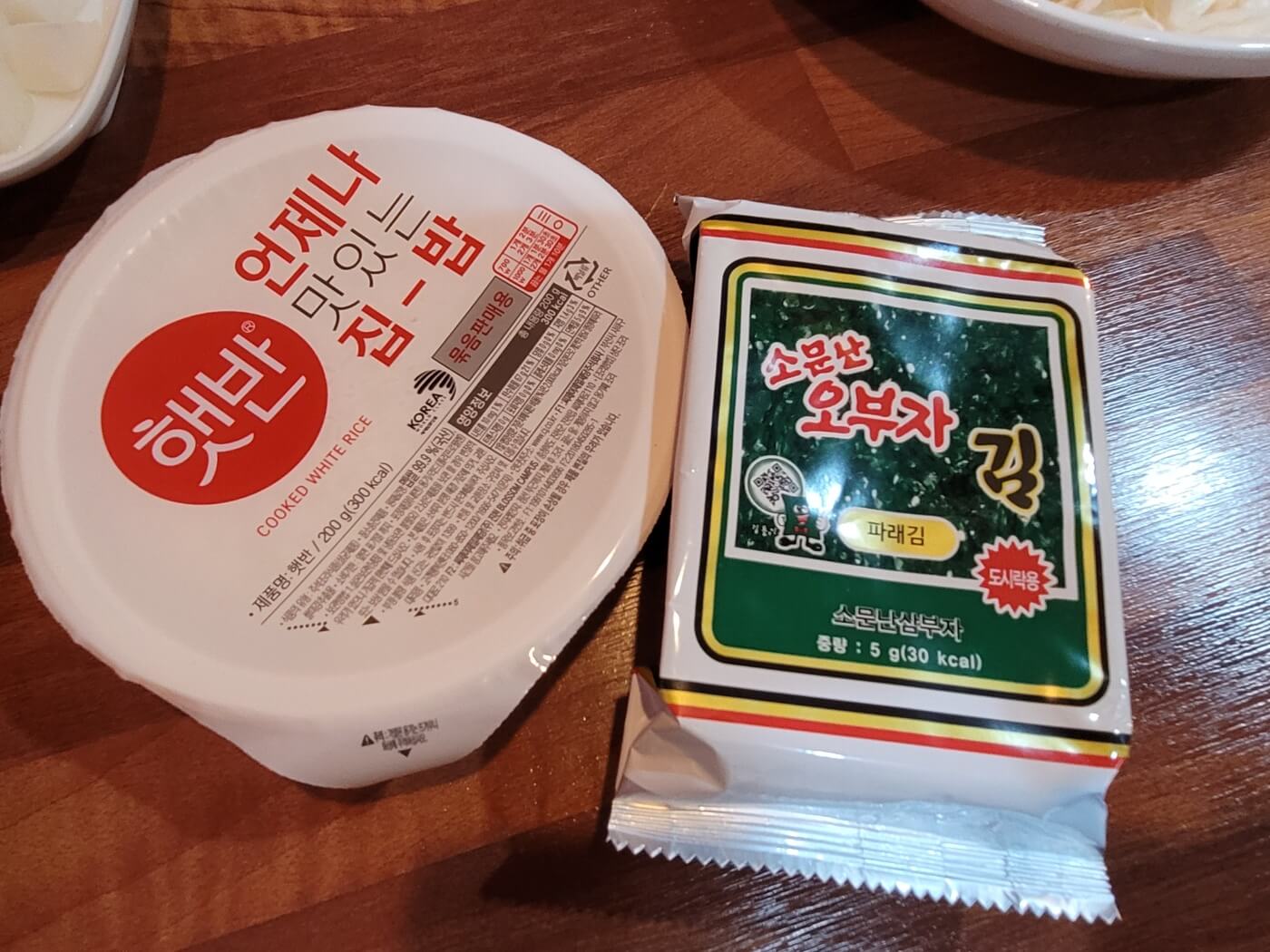해태바베큐에서는 밥이나 면 사리를 제공하지 않아요. 그래서 방문 전에 근처 편의점이나 마트에서 햇반, 김, 치즈, 삶은 달걀 등을 사서 가는 것을 추천해요. 특히 햇반에 닭 바베큐의 양념을 비벼 먹으면 그 맛이 배가돼요. 매장에는 전자레인지가 준비되어 있어 햇반을 데울 수 있으니 걱정 마세요.