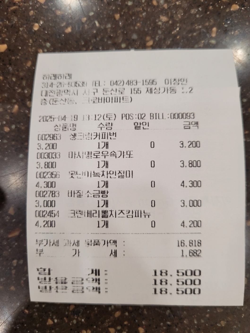 저희는 많은 빵 중에서 다음과 같이 구입했어요.