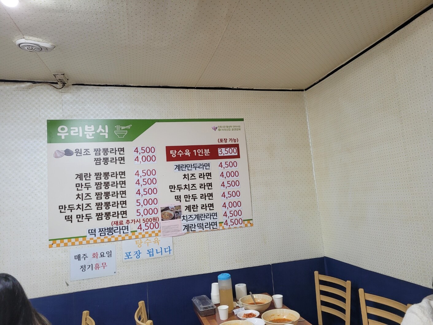 저희는 짬뽕라면 1인분과 탕수육 1인분을 주문했어요.