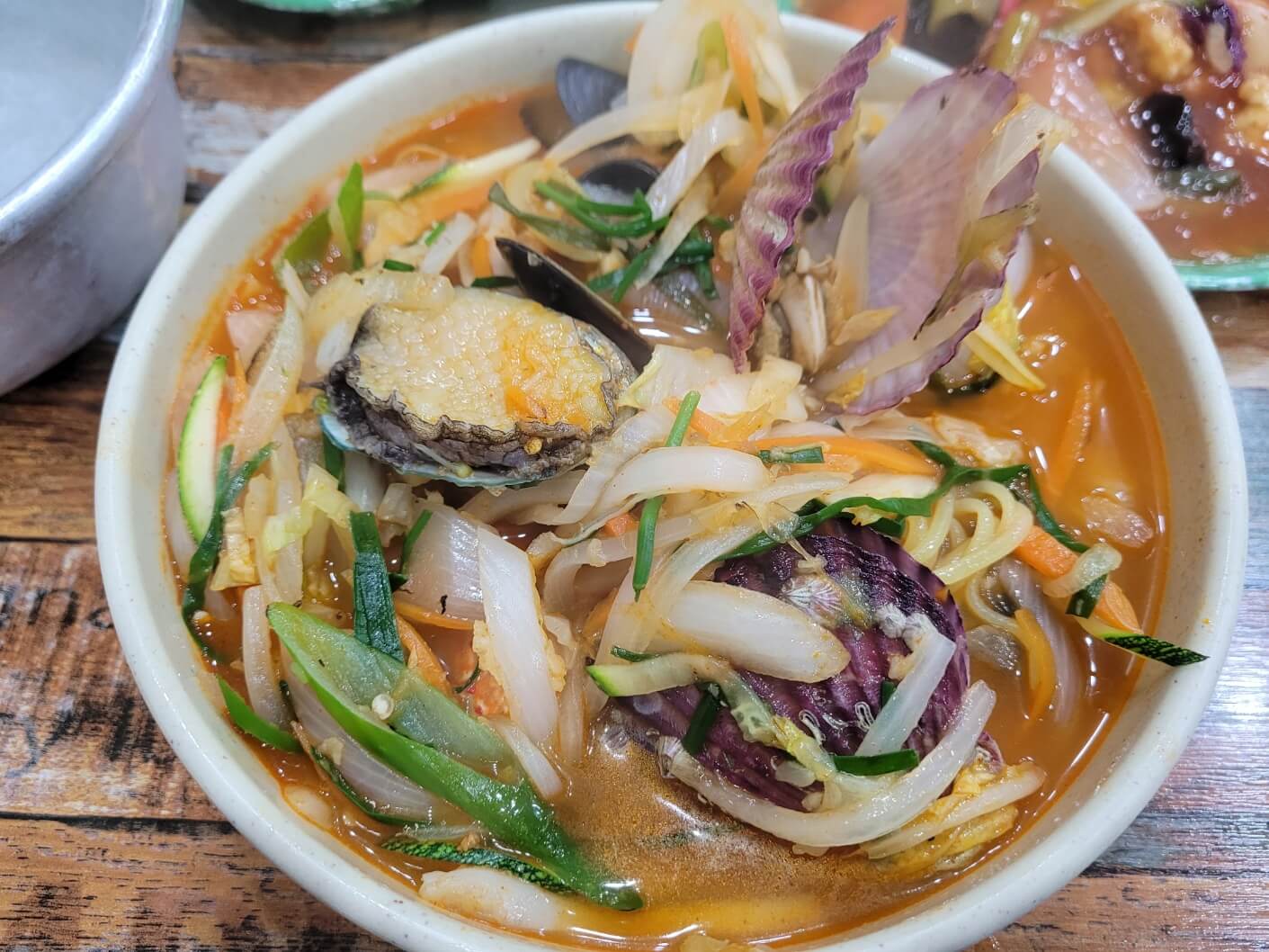 해물짬뽕은 가리비, 오징어, 새우, 홍합 등 다양한 해산물이 들어있어 비주얼은 만족스러웠어요. 국물은 맵지 않고 간이 세지 않아 자극적이지 않았지만, 기대했던 시원한 맛은 다소 부족했습니다. 면은 얇고 부드러워 국물과 잘 어울렸습니다.