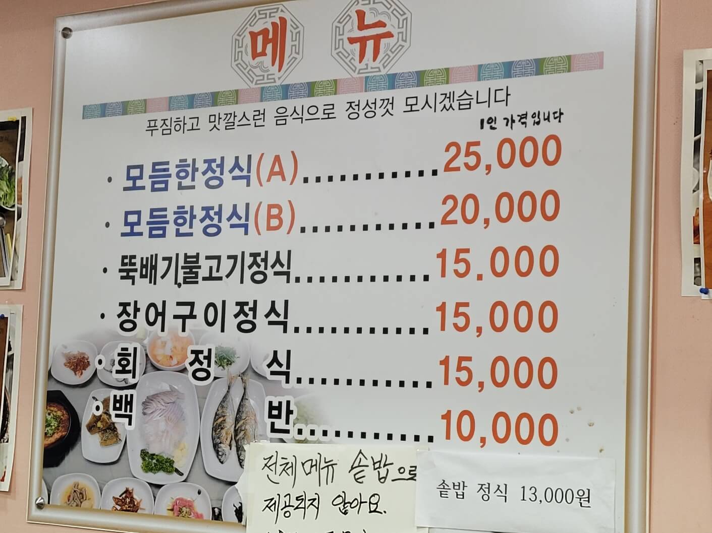 - 모듬한정식 A: 25,000원