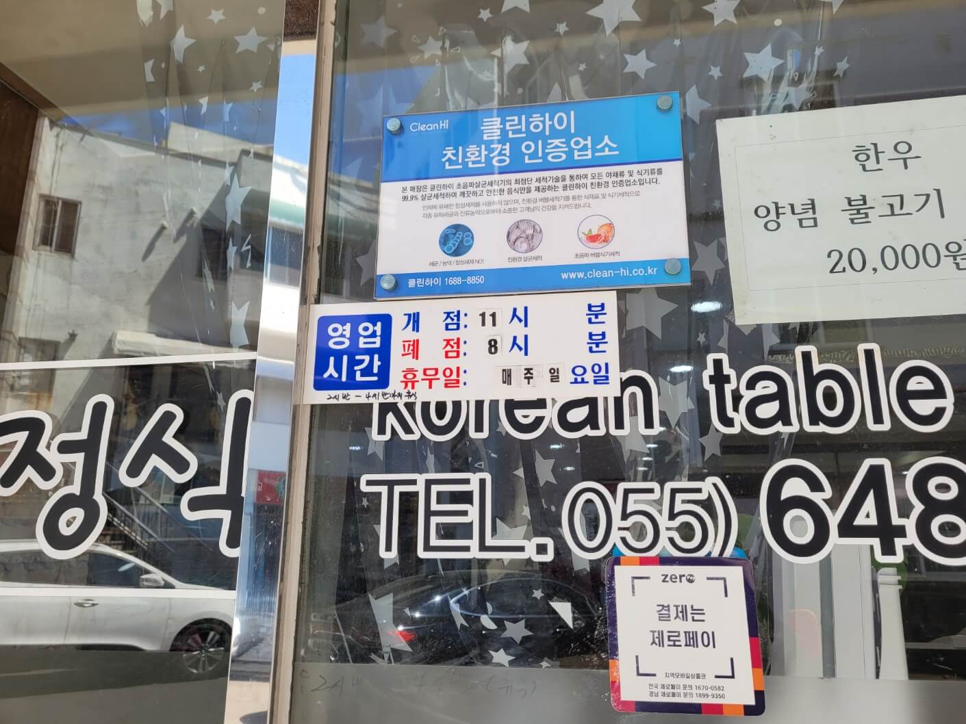 - 모듬한정식 B: 20,000원