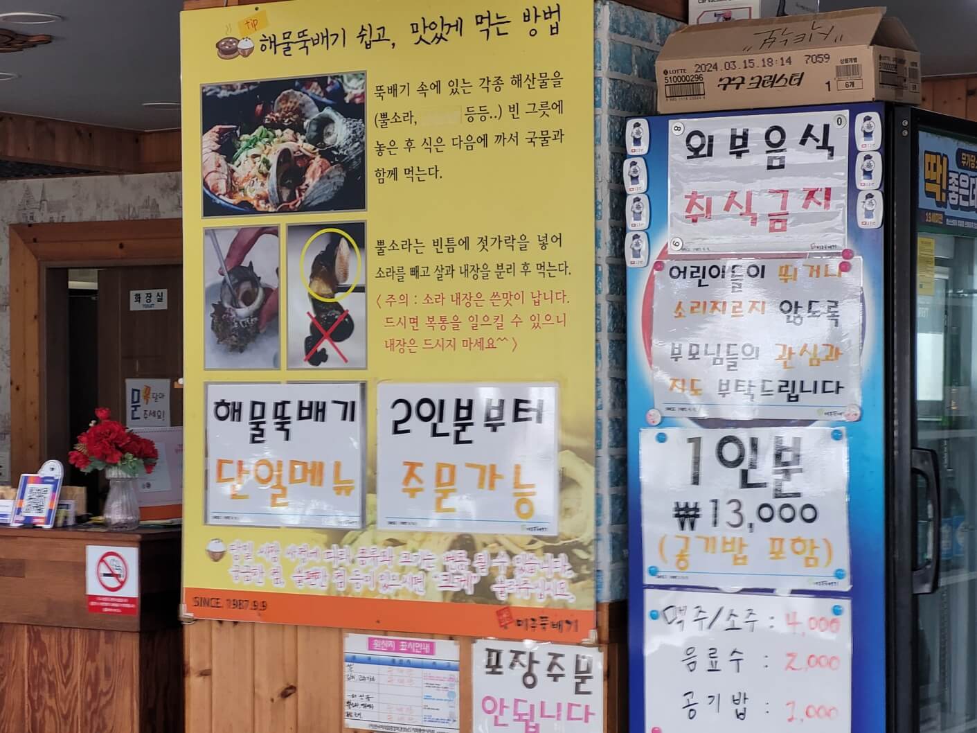 - 해물뚝배기: 13,000원 (공깃밥 포함)