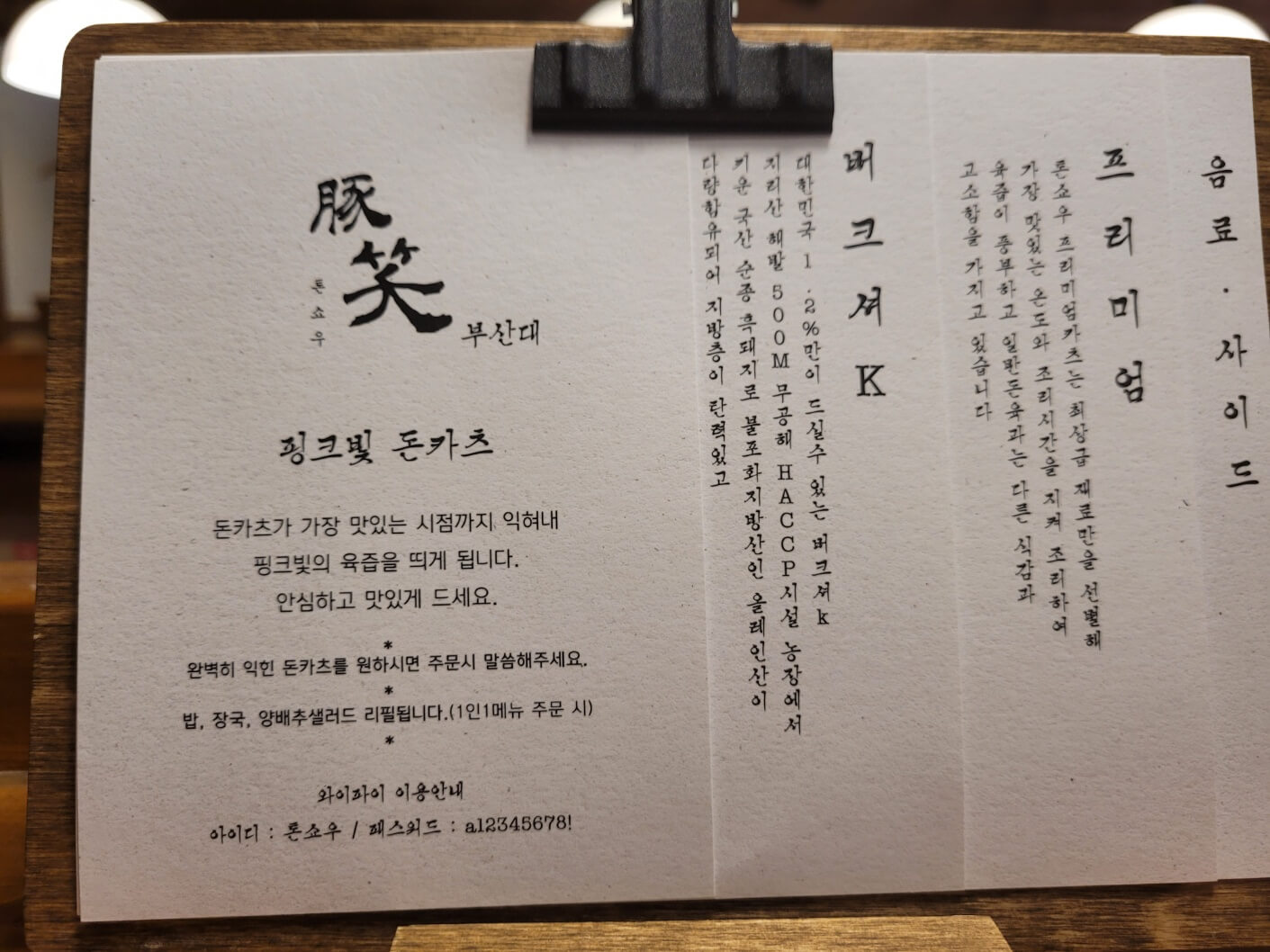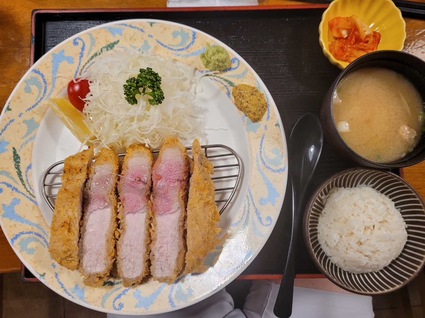 - 곁들임 소스 구성: 버크셔 로스카츠와 동일하지만, 특히 말돈소금과의 조합이 가장 좋았습니다.