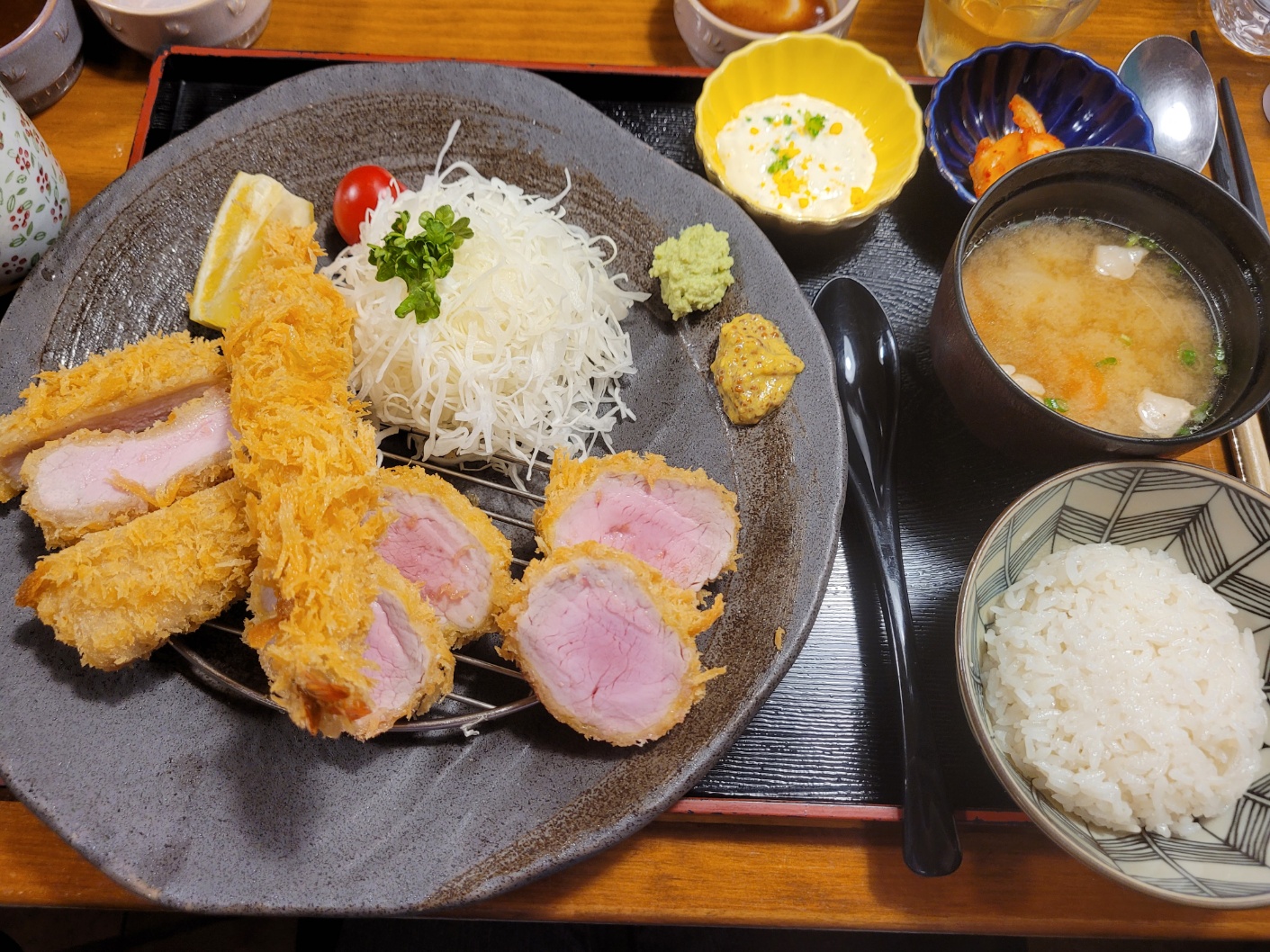 - 비주얼: 돈카츠는 약 2cm 이상의 두께로 눈으로 보기만 해도 두툼한 고기의 육즙이 느껴질 만큼 압도적인 비주얼이었어요.