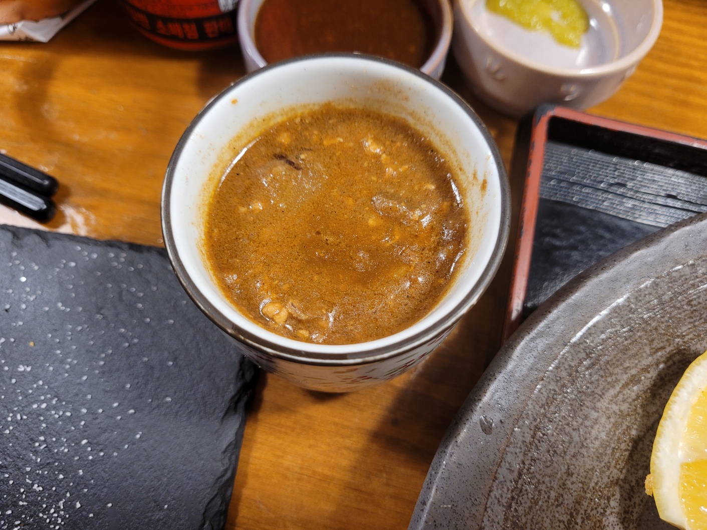 - 레몬코쇼(유자고추소스): 상큼하면서도 짭짤한 맛으로 느끼함을 잡아주고, 카츠의 풍미를 더해줬어요.