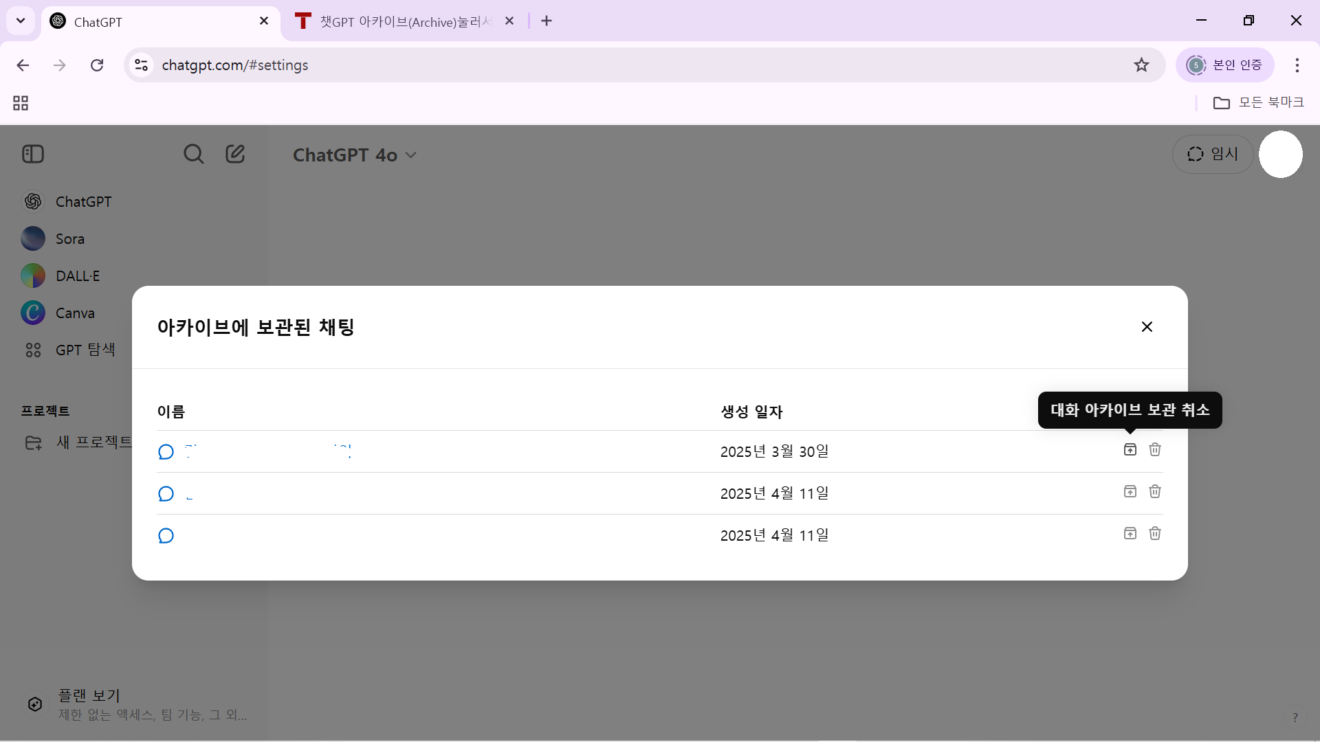 🔄 아카이브 대화 다시 불러오기 (보관 취소로 복원하는 방법)