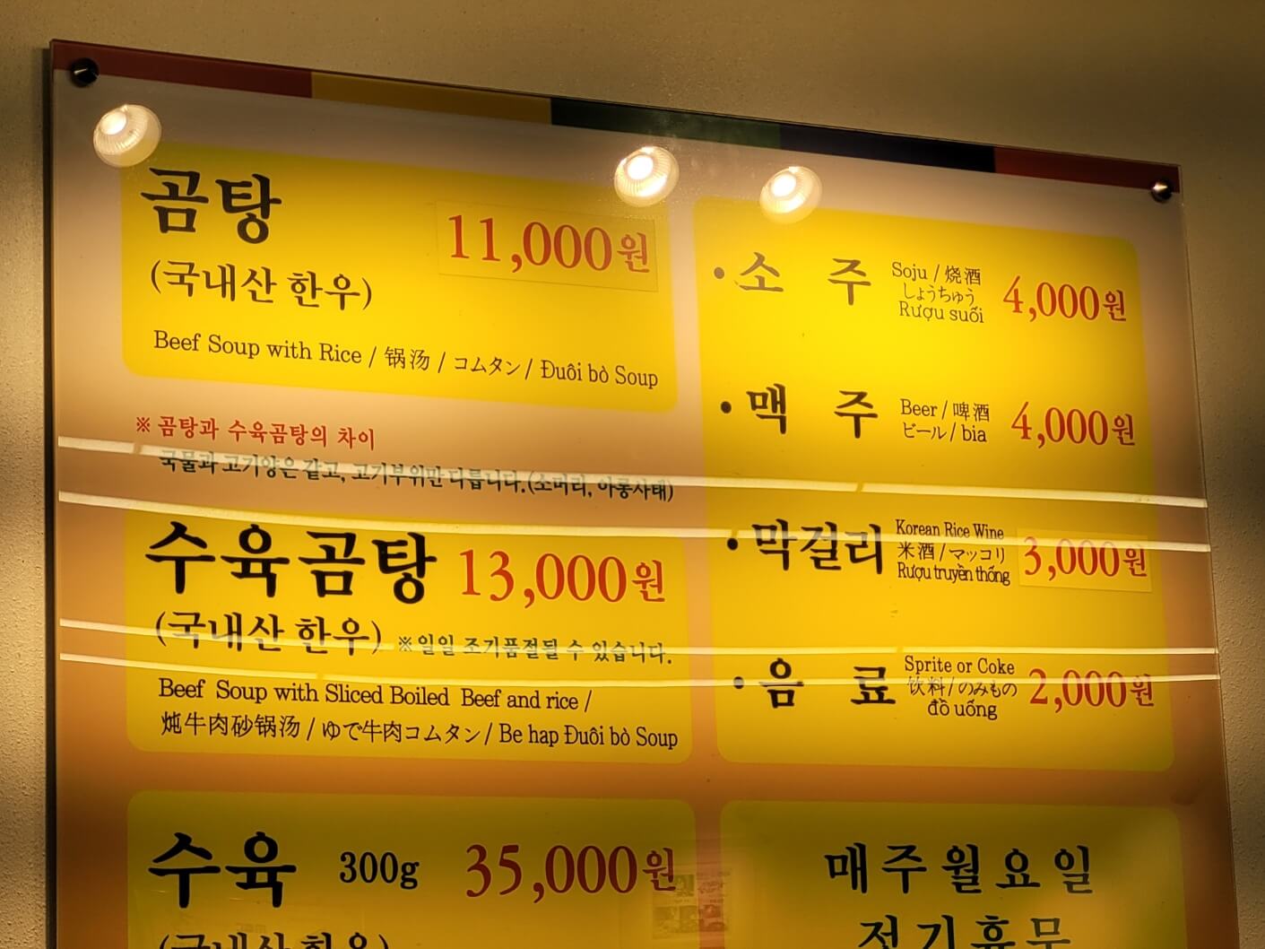 저희는 곰탕(11,000원), 수육곰탕(13,000원)을 주문했고 밥은 따로 달라고 요청했어요.
