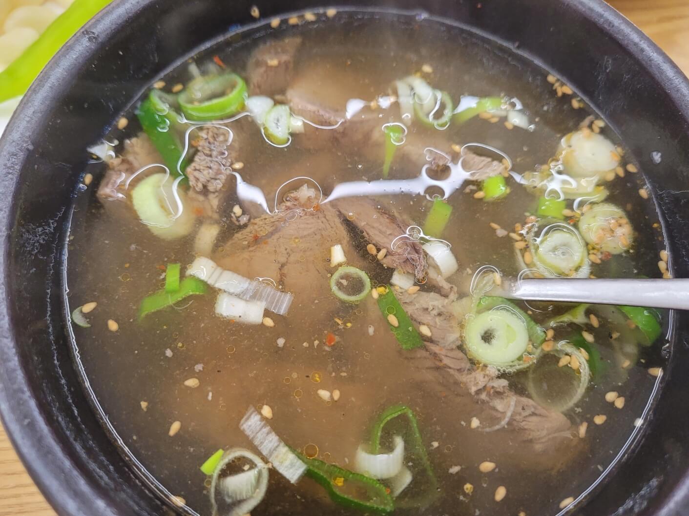 - 단지 예전에 먹었던 다른 집에서의 곰탕 국물보다는 간이 세고, 고춧가루가 들어있어서 좀 더 담백한 맛을 기대했던 저희에게는 살짝 아쉬웠어요.