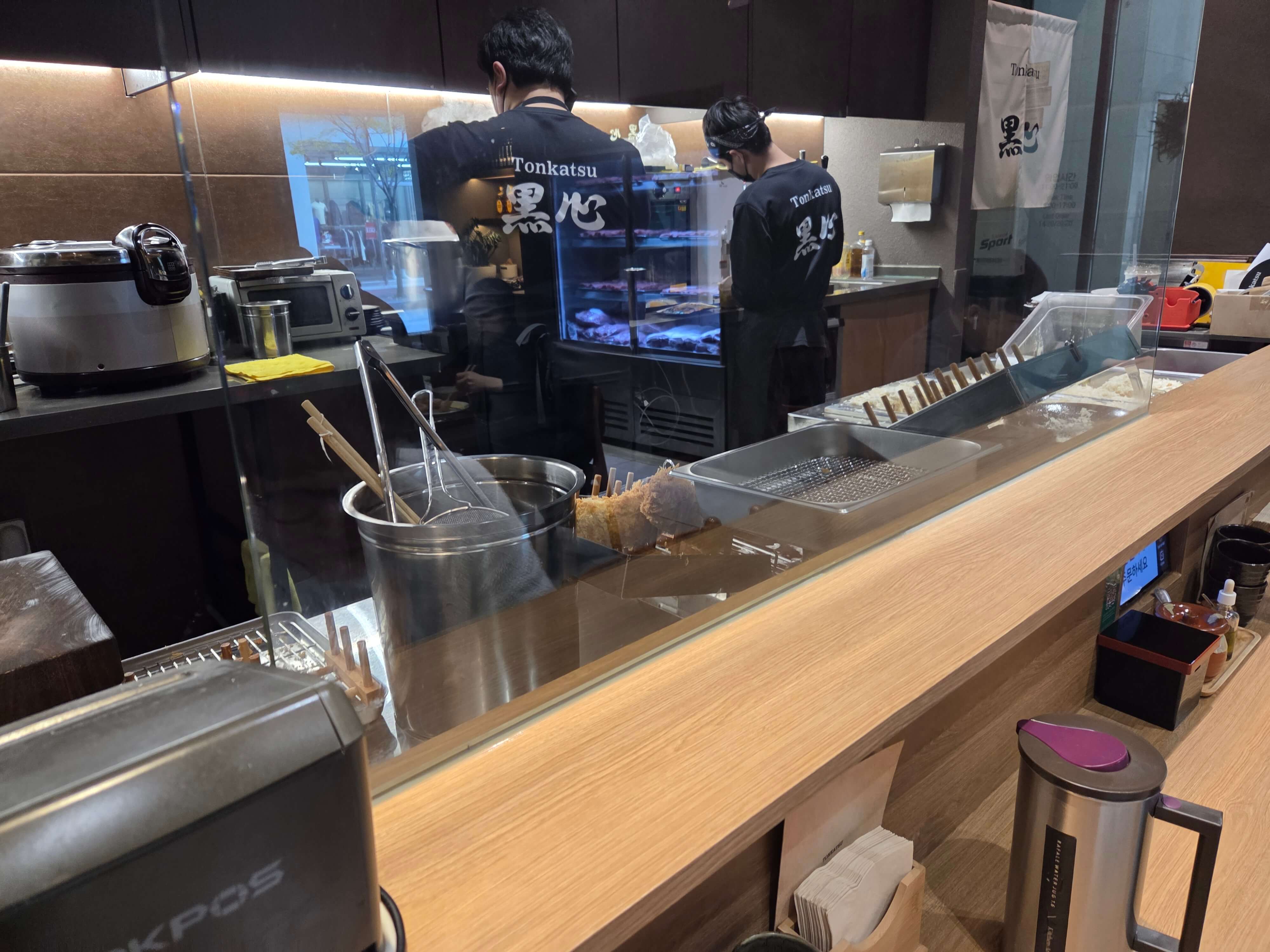 - 주방이 살짝 보이는 반 오픈 키친 형식이라 튀김 소리, 자르는 소리까지 들려서 기대감이 올라가요.