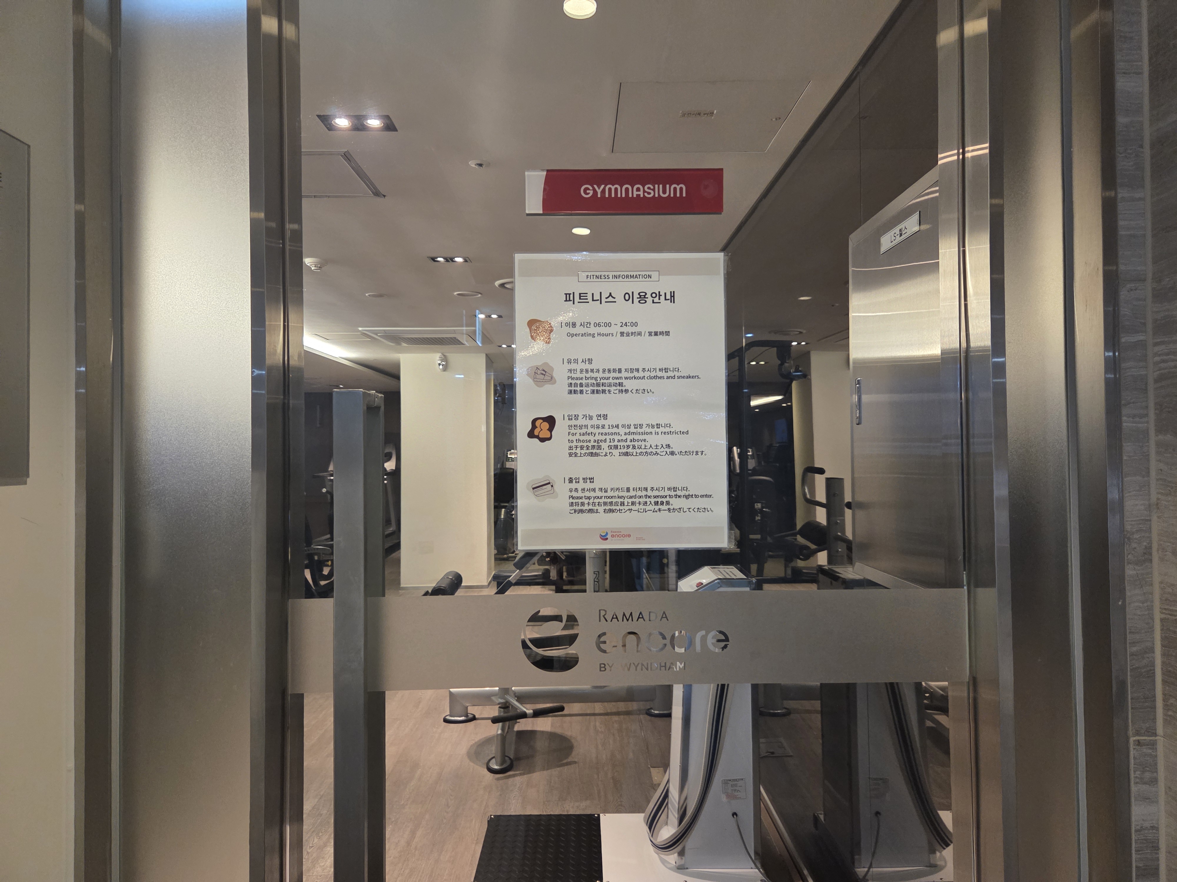 여행 중이라도 가볍게 러닝머신이나 스트레칭하기에 충분한 규모입니다.