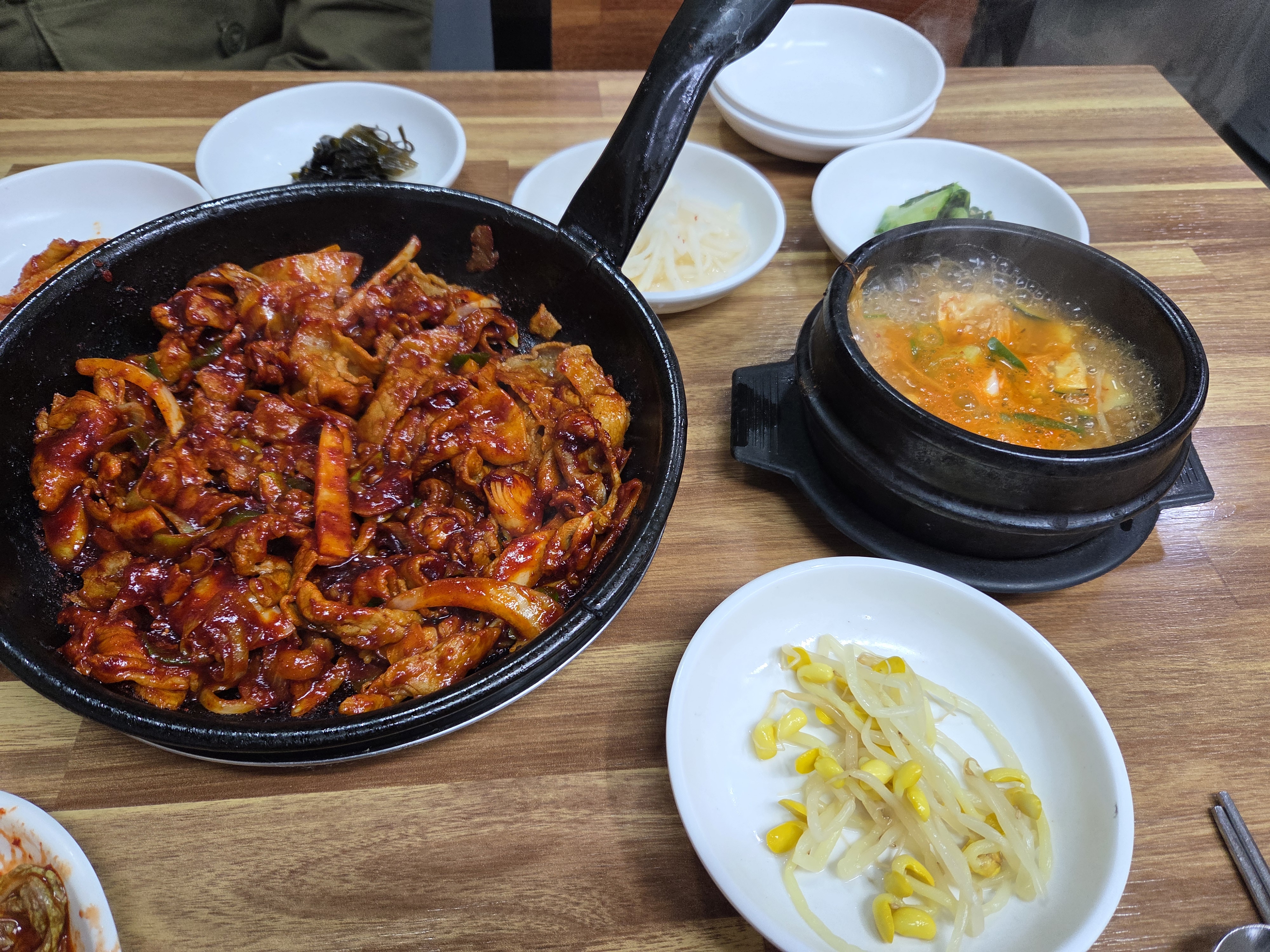된장찌개는 딱 불백과 어울리는 구수하고 깔끔한 스타일로, 고기 맛을 한층 부드럽게 잡아줍니다. - 밑반찬도 생각보다 다양했어요—어묵볶음, 무생채, 쌈채소 등이 있어 조합이 지루하지 않더라고요. 특히 상추에 불백 한 점, 무생채 올려 먹으면 그야말로 “밥도둑” 조합입니다.