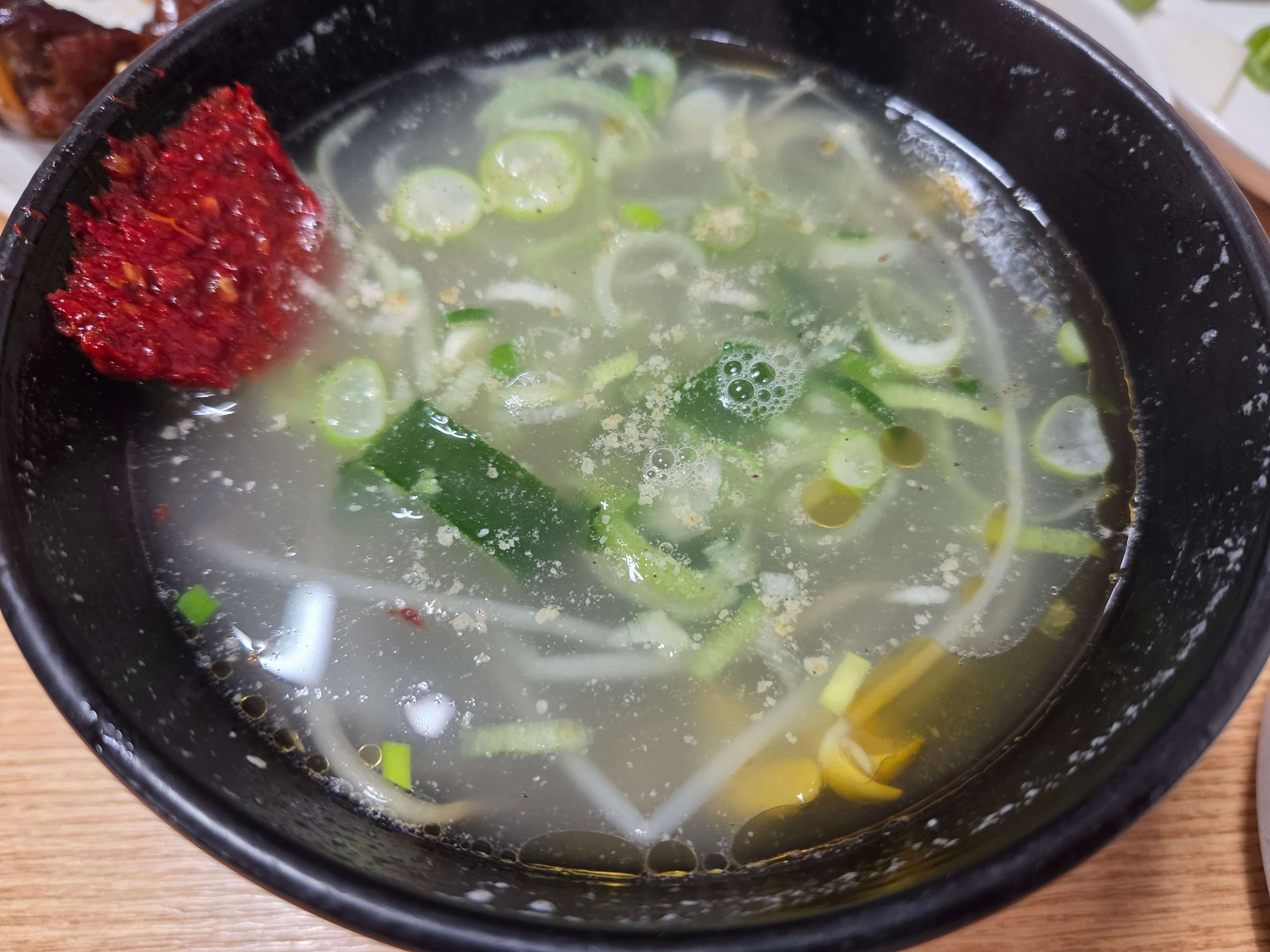 함께 나온 국물은 진한 맛으로 곱창과 곁들이기 좋아요.