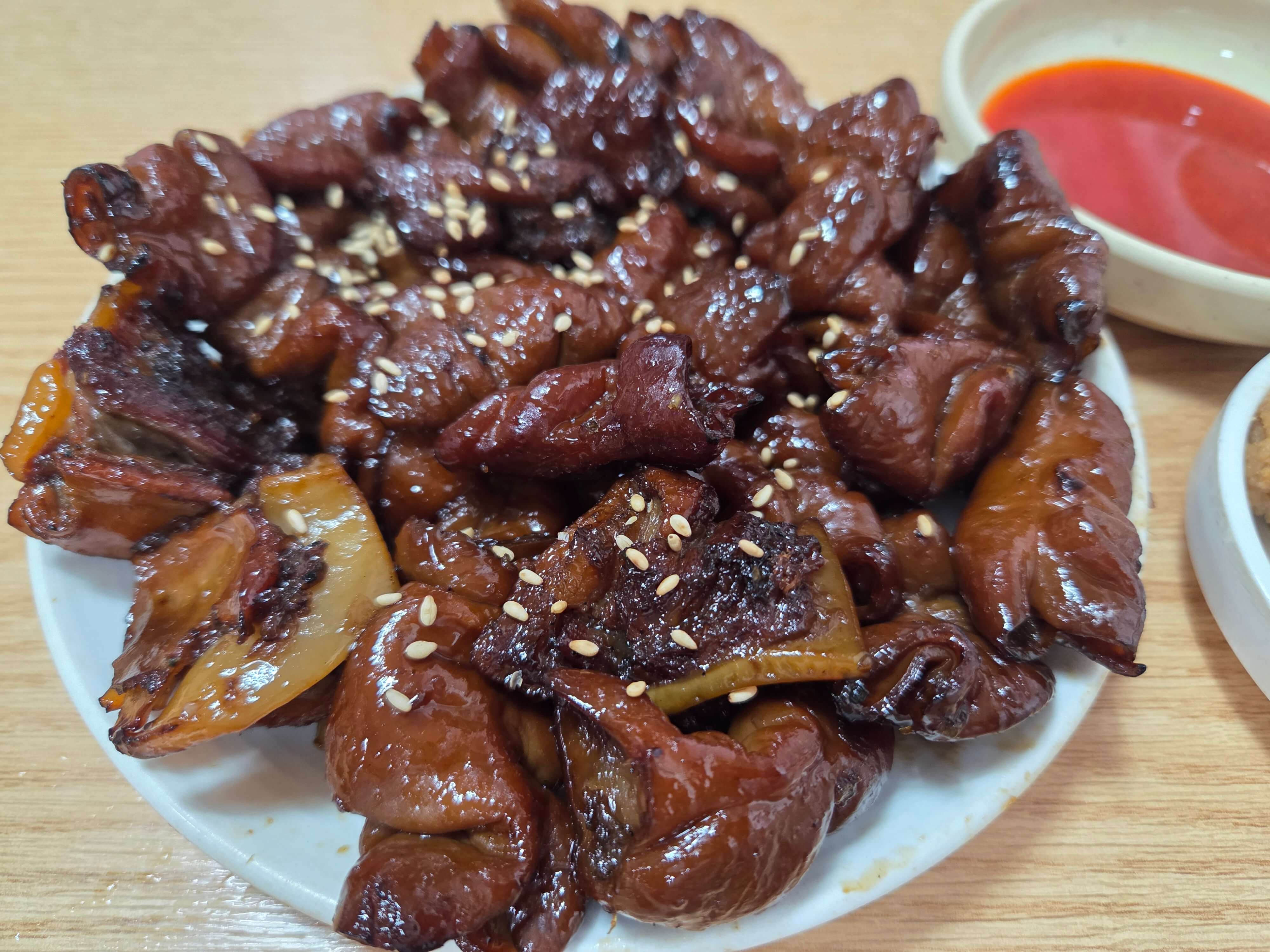 곱창구이는 이 집의 대표 메뉴 중 하나. 불향이 가득하며 잡내 없이 깔끔합니다. 한 점 먹으면 쫄깃하면서 고소함이 잘 올라오고, 간장 베이스의 달짝지근함이 더해져 술안주로도 훌륭해요.
